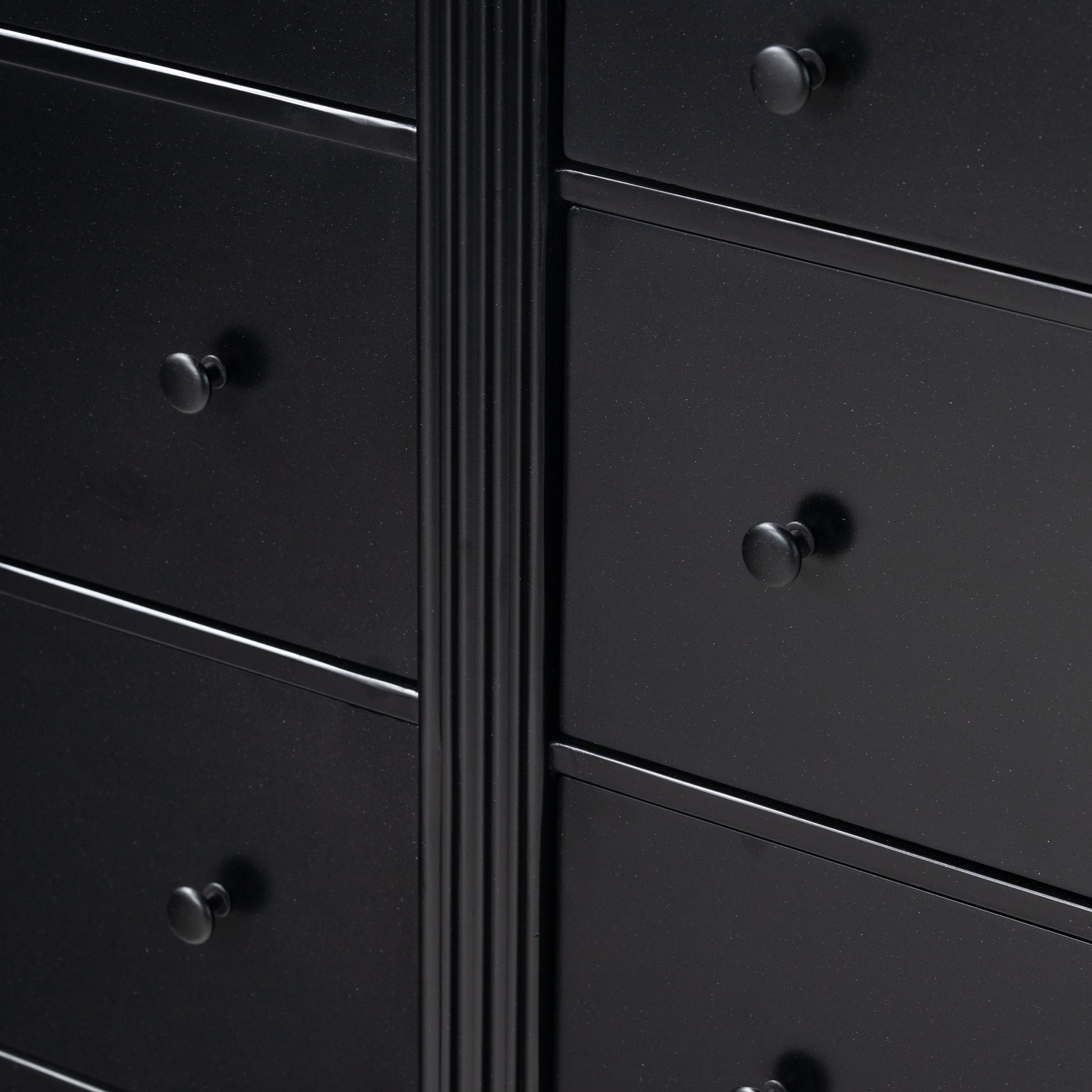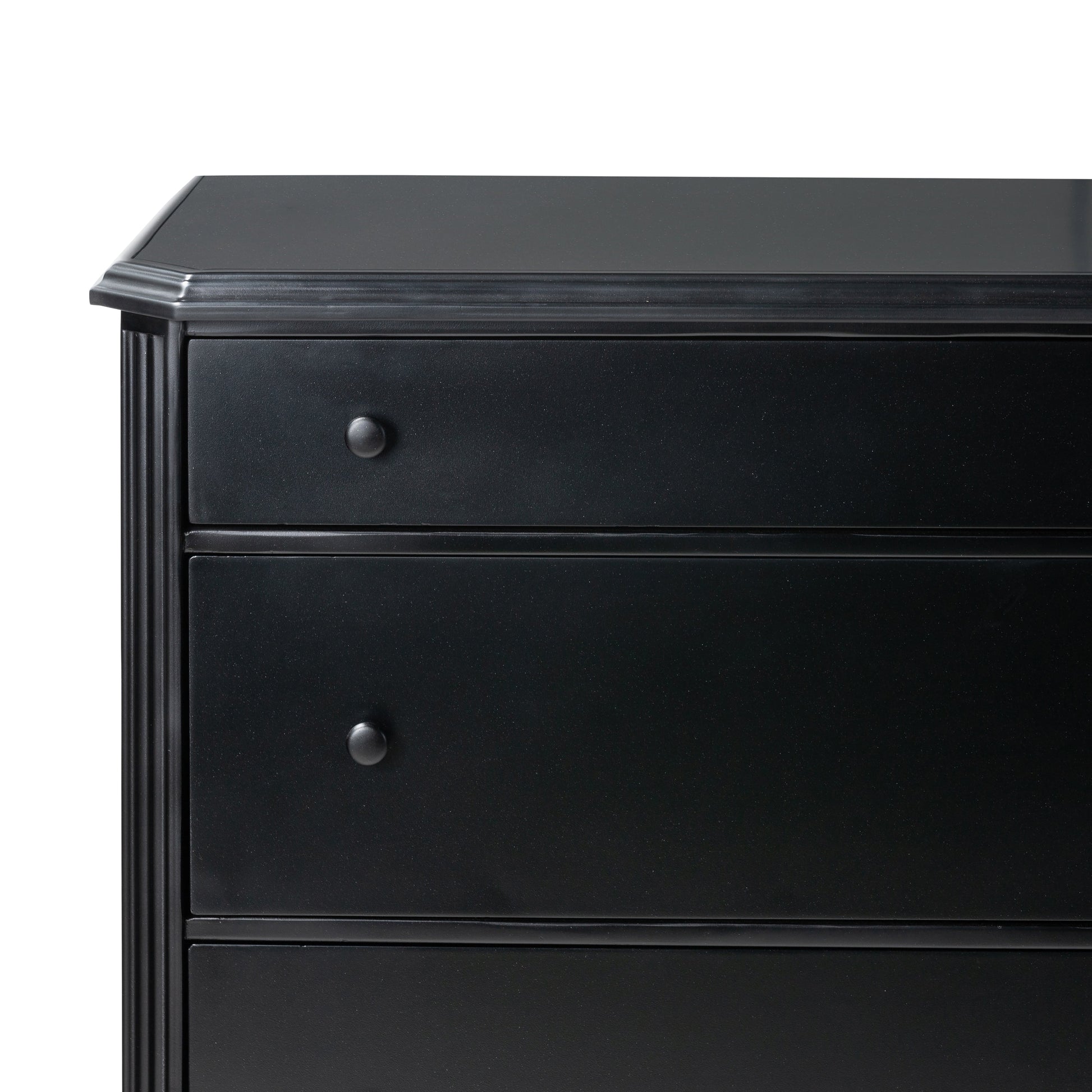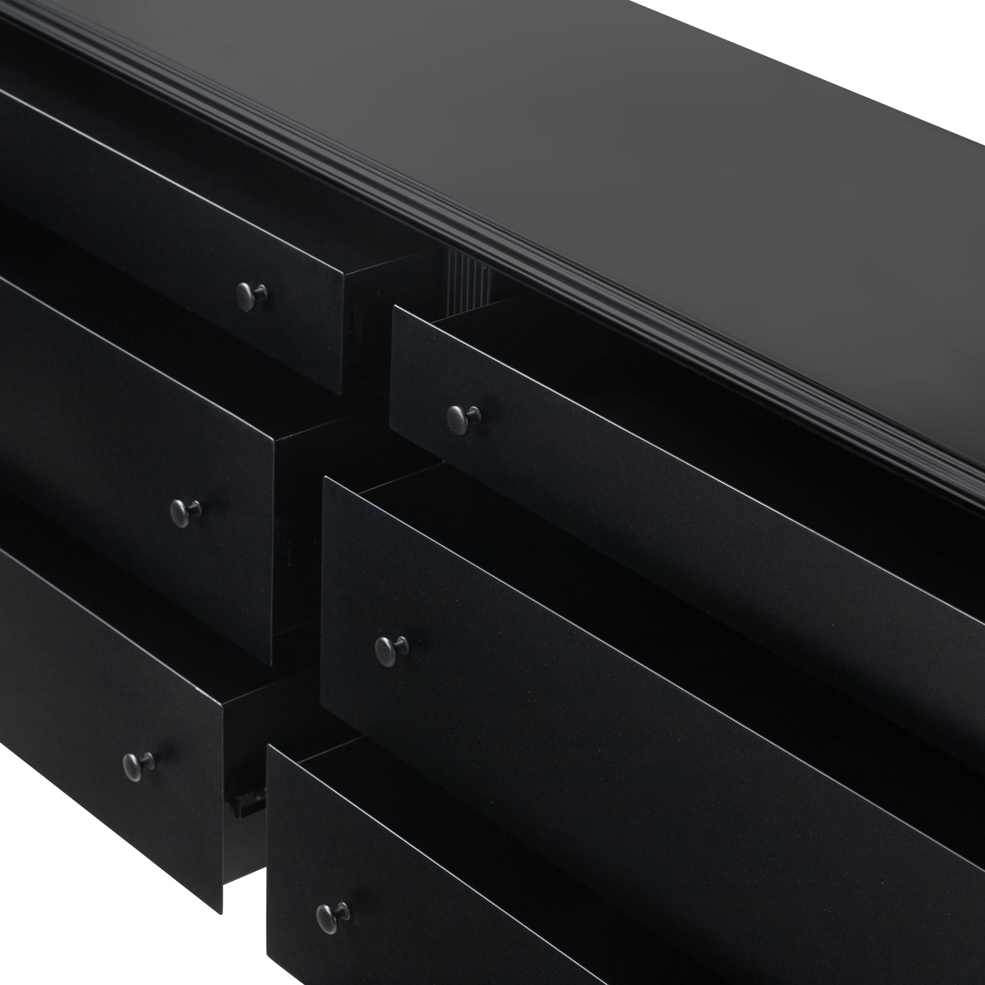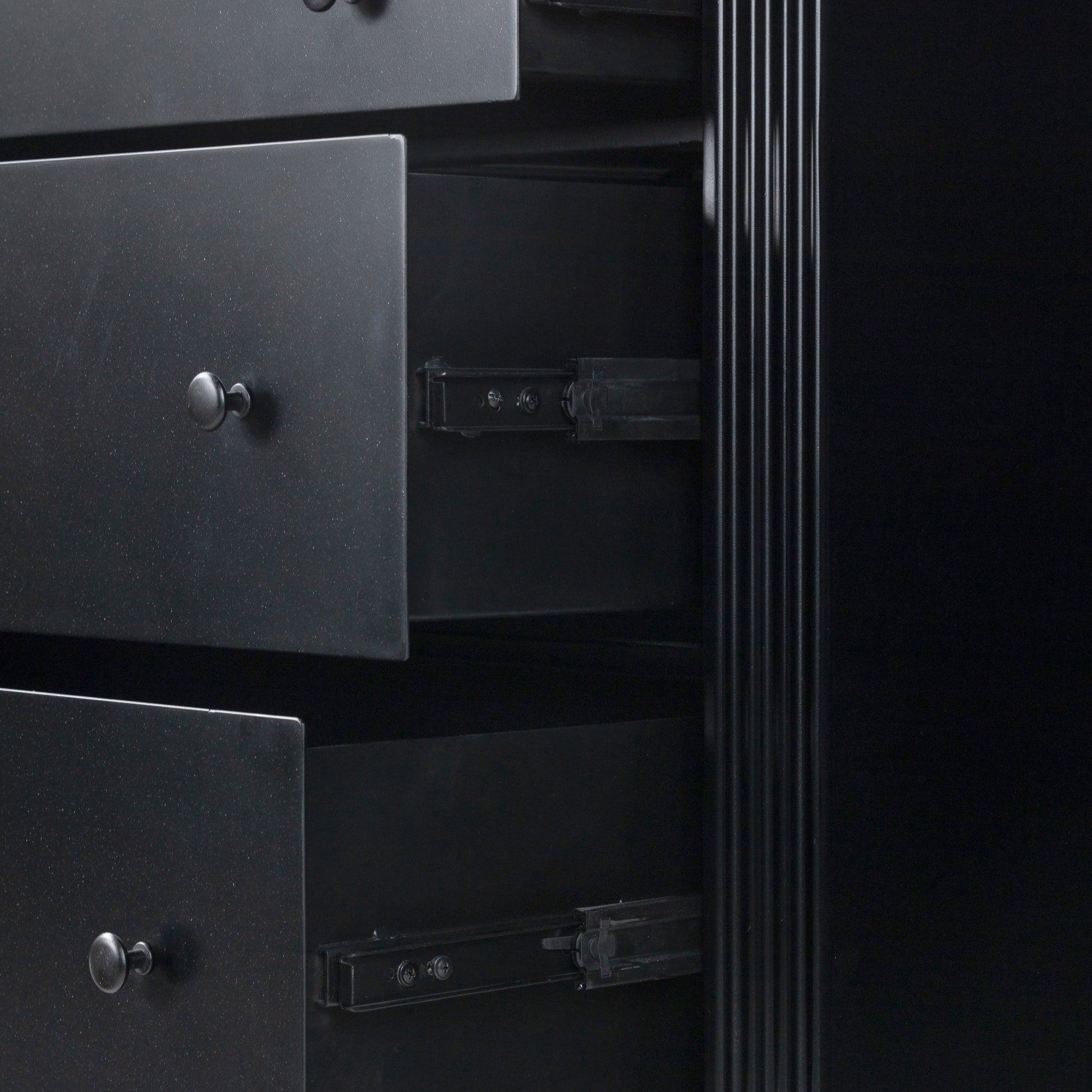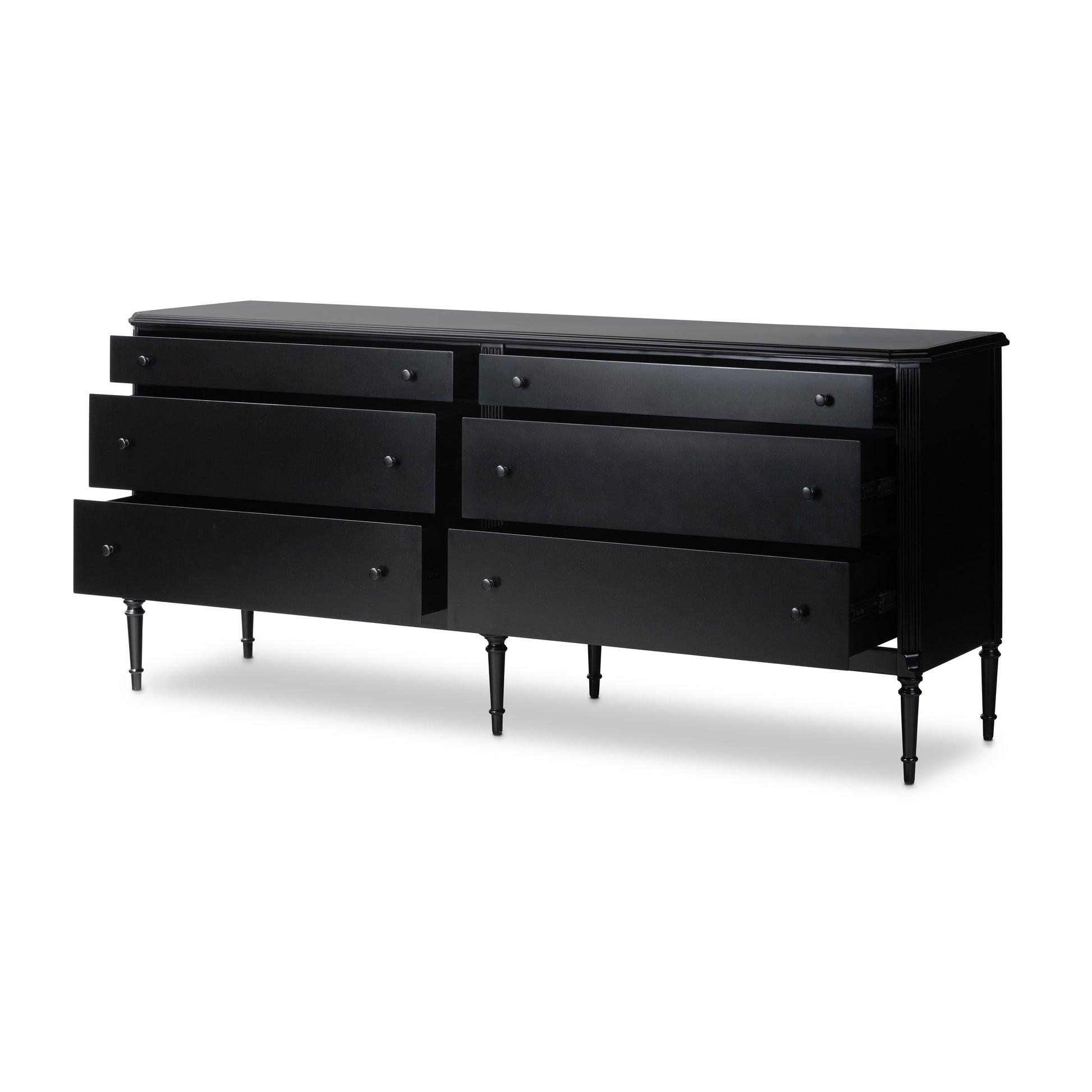 This French-inspired full-on metal dresser features turned leg detailing, classic moulding along the edges and an ogee edging on top. Drawers open and close on smooth side-mount metal glides. Crafted from iron in a matte black.