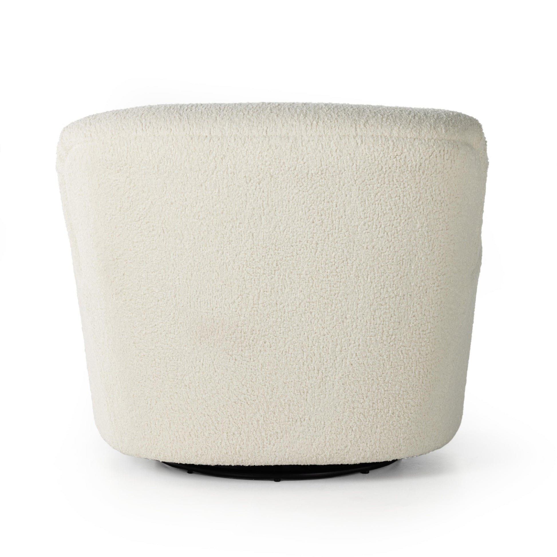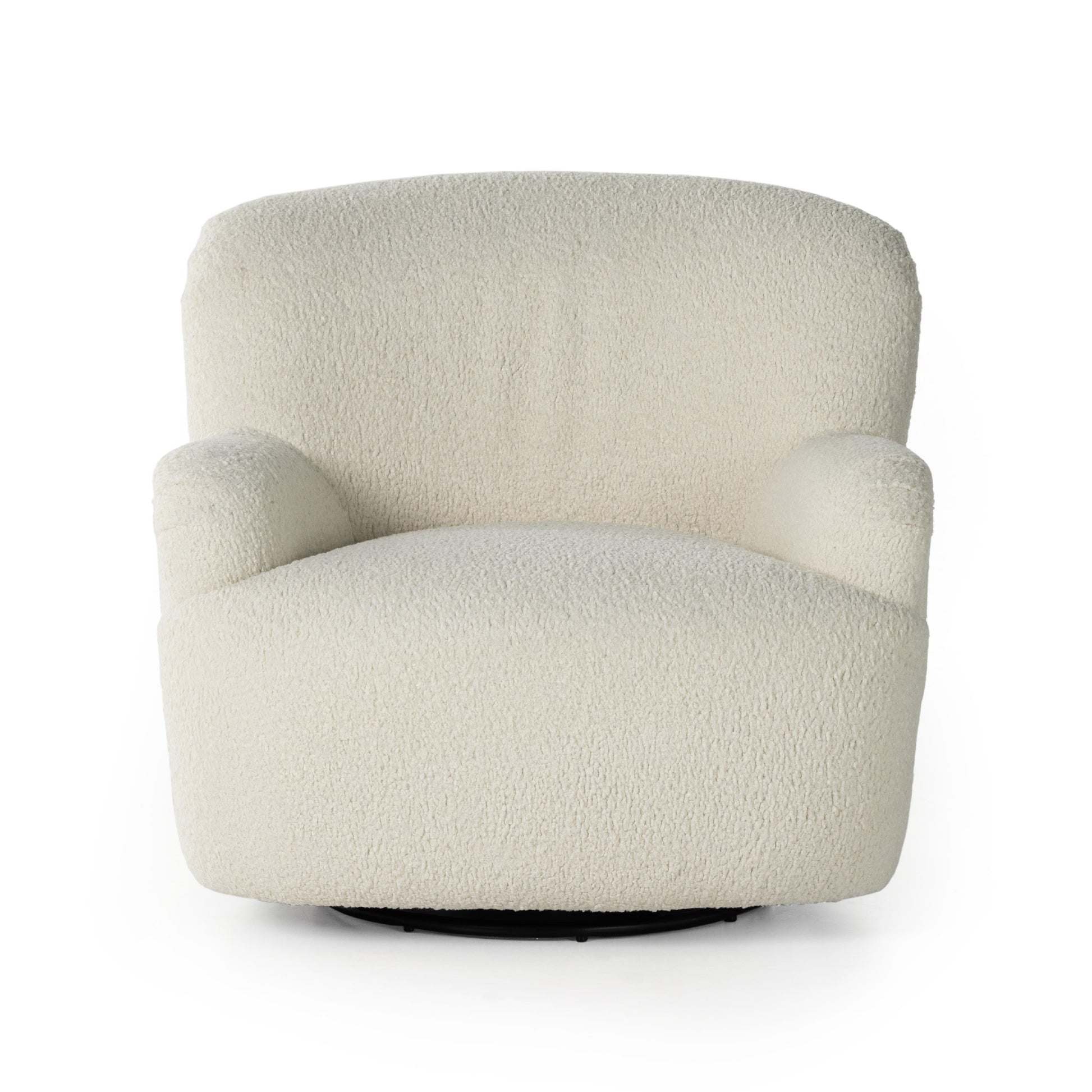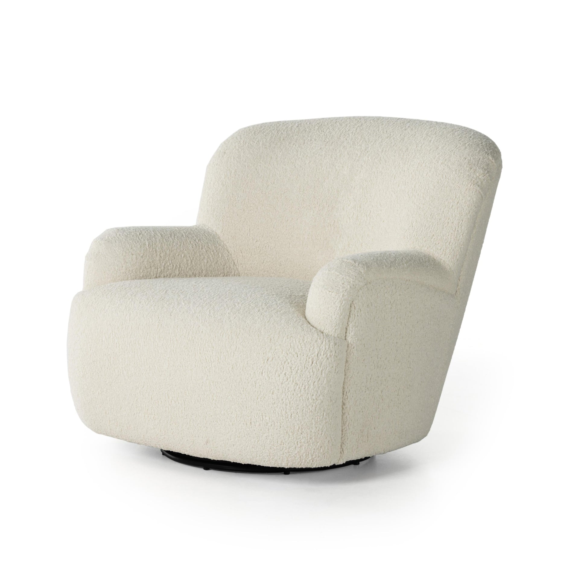 Simple, yet stylish, the Ruby Swivel Chair provides a high-wing back and rolled arms for an easy, soft sit. With 360-degree swivel, the shearling-upholstered seat offers complete comfort and total mobility.