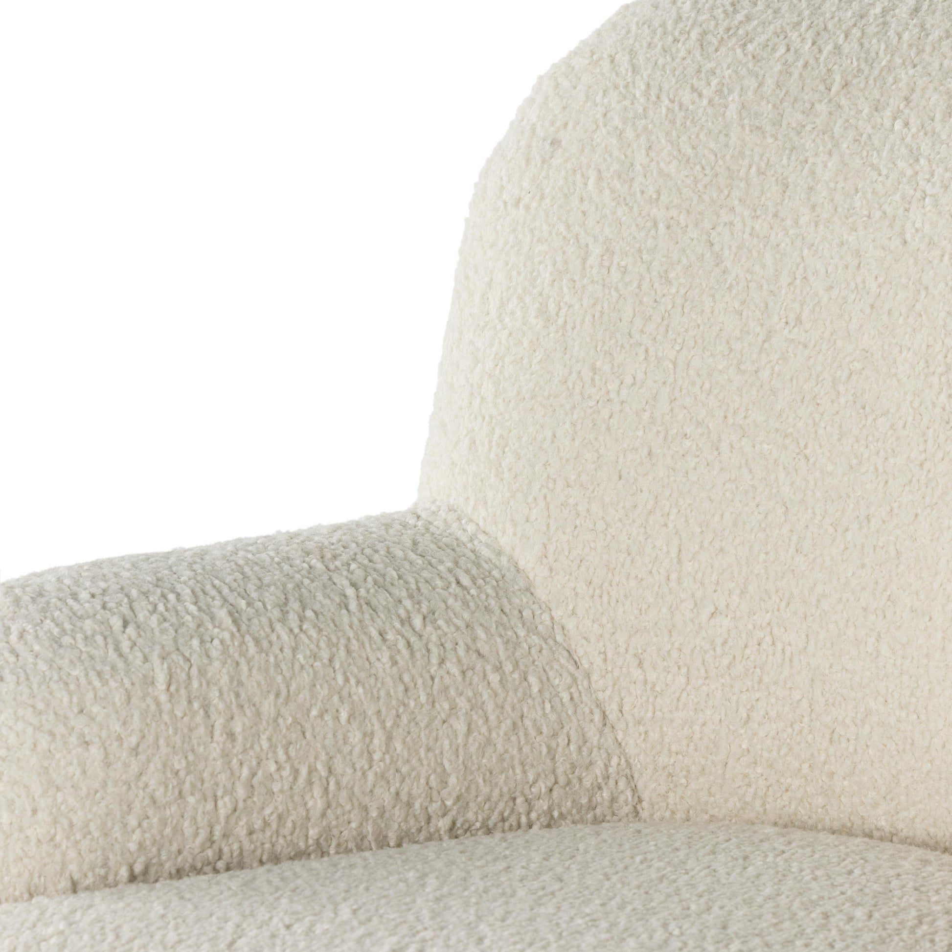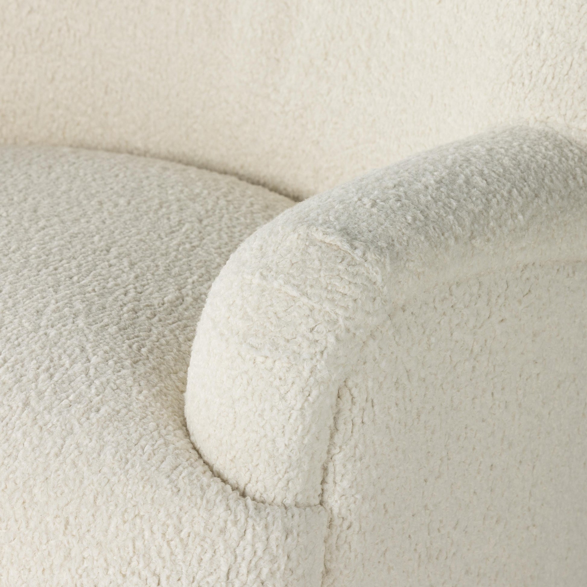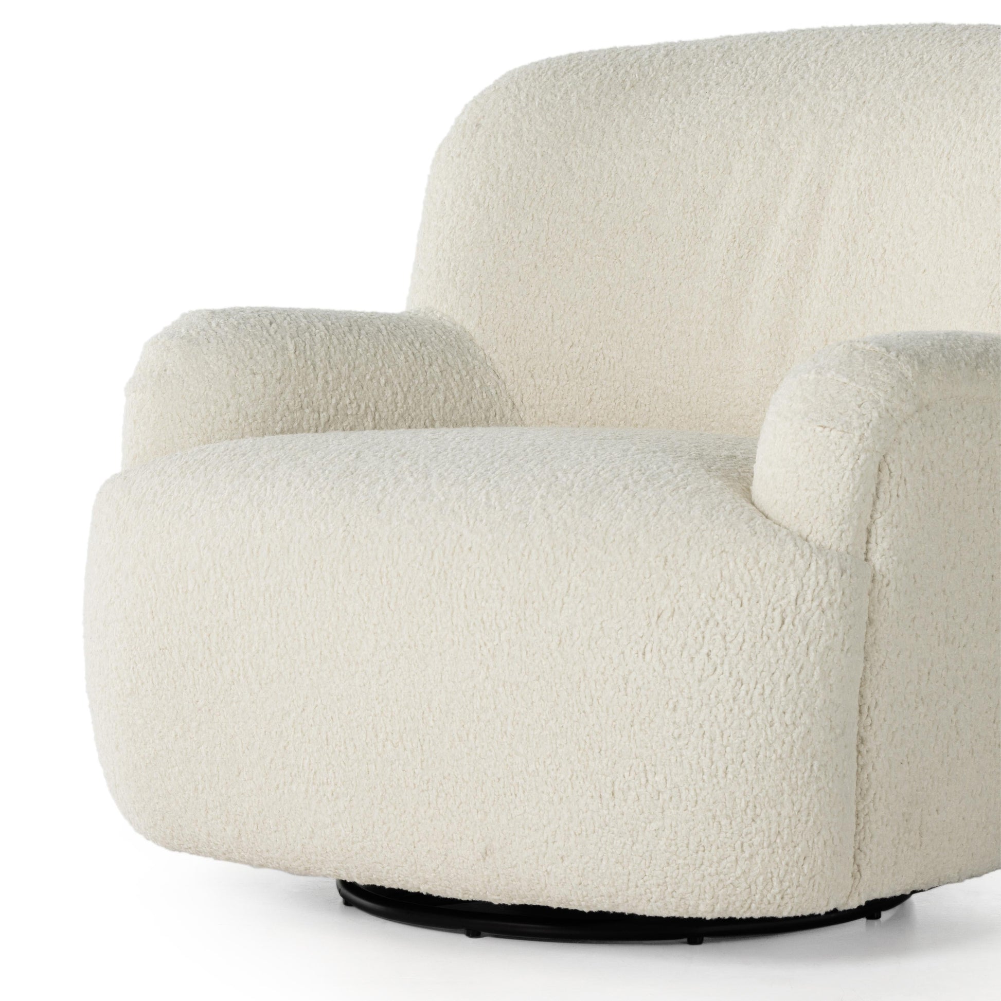 Simple, yet stylish, the Ruby Swivel Chair provides a high-wing back and rolled arms for an easy, soft sit. With 360-degree swivel, the shearling-upholstered seat offers complete comfort and total mobility.