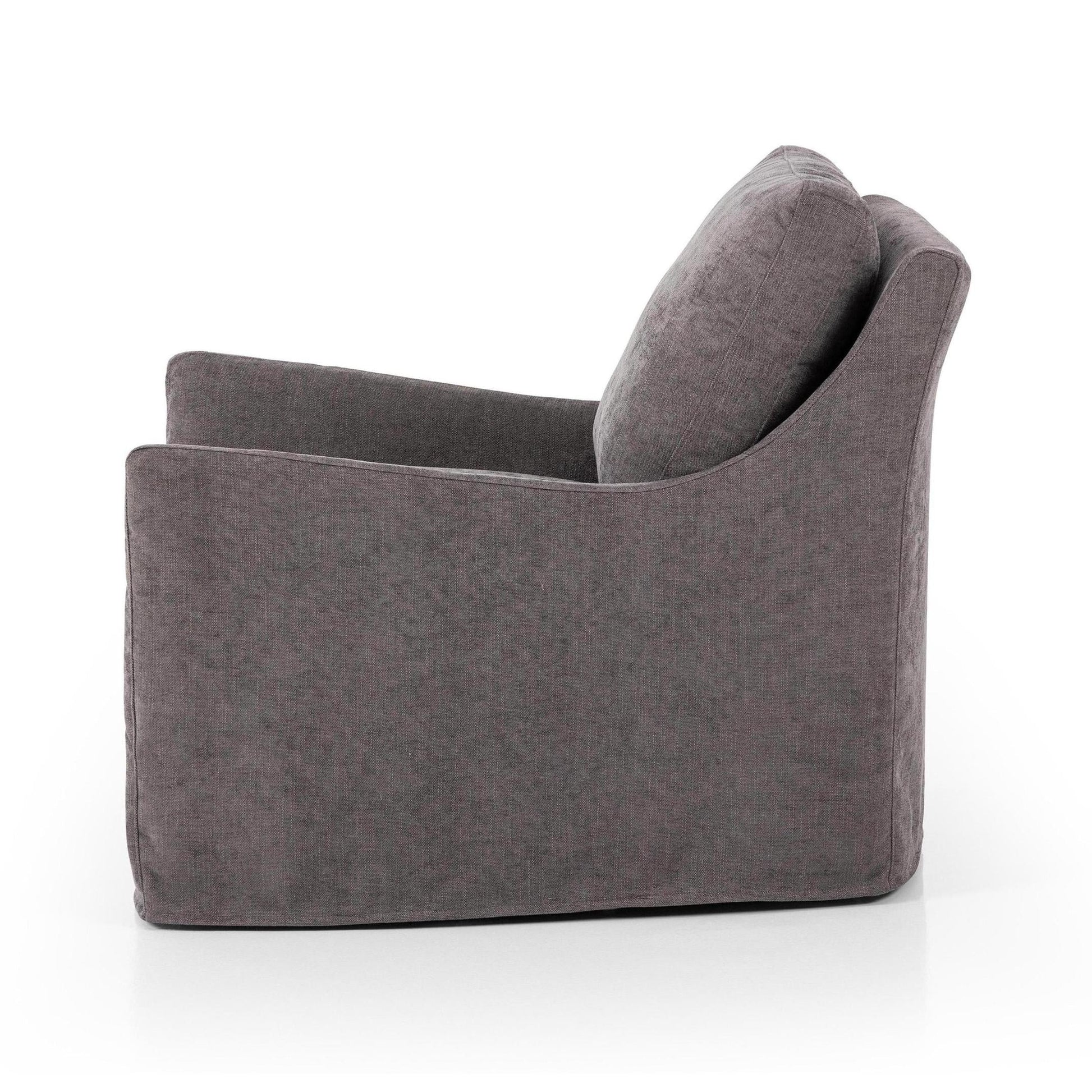 Comfortable from every angle, the Sabine Slipcover Swivel Chair features a concealed 360-degree swivel base with a slightly sloped frame finished in a soft, tight weave slipcover.