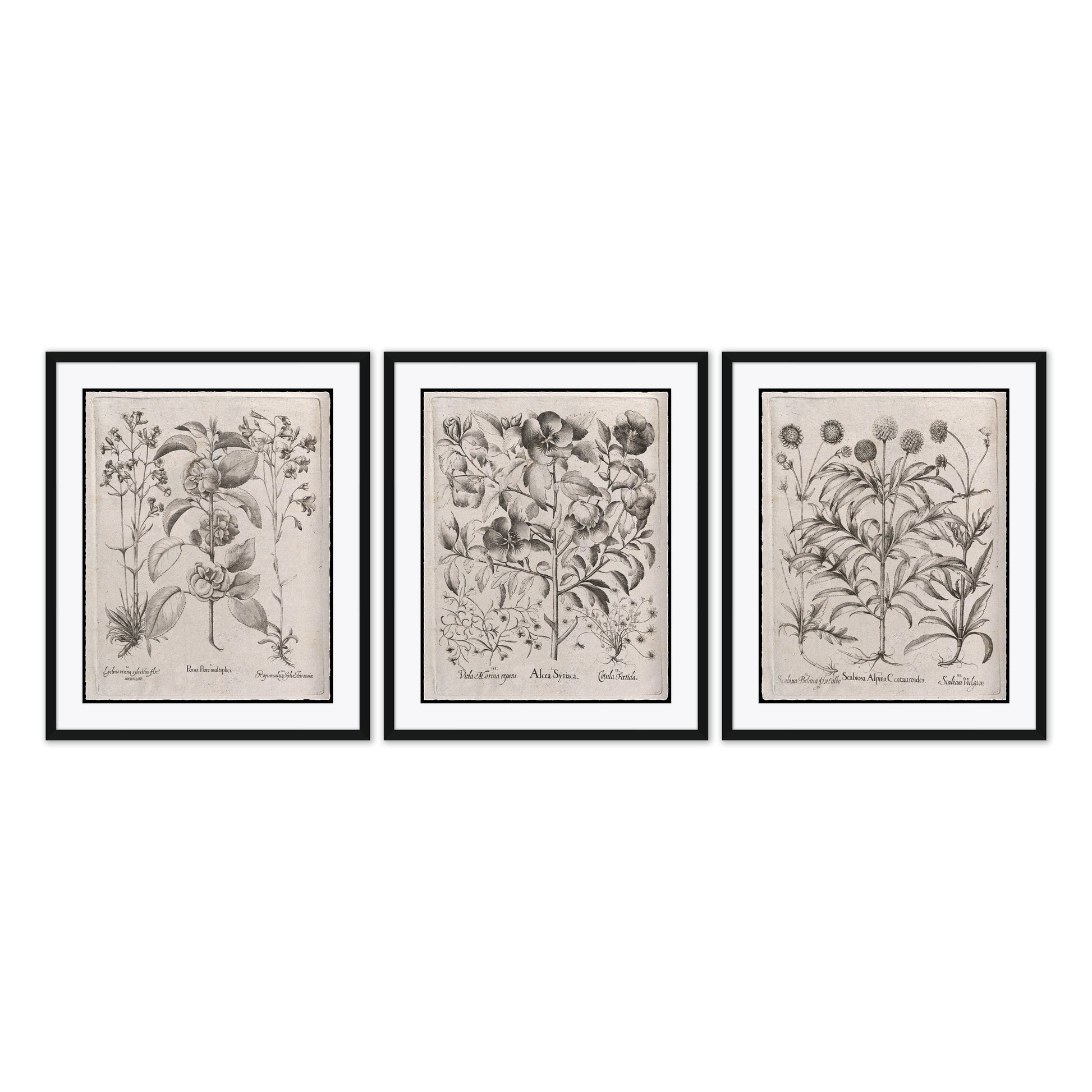 Intricately detailed botanical sketches, complete with Latin names and deckled edges, give this collection a charmingly vintage style. This handmade giclée is encased with a white linen liner and a clean-lined black frame for a dramatic, high contrast look that can stand alone or be grouped as a set.