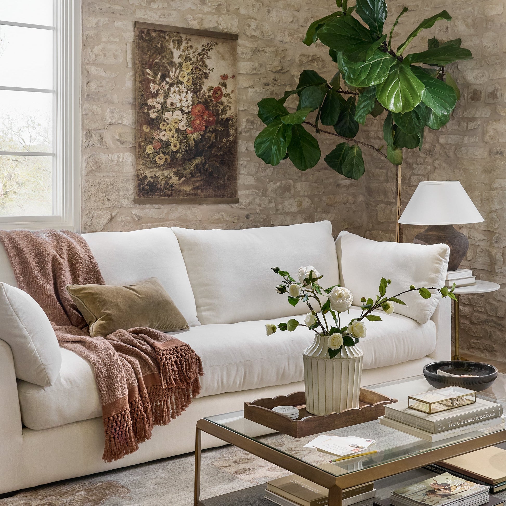 Custom made for you, only at Magnolia: The Serene Sofa features a lengthy bench-style seat backed with pillow-inspired cushions for optimal comfort. Upholstered in linen for a tonal, textured look, this sofa is a timeless addition to any living space. Available in a variety of linen upholstery options. You choose the color, fabric, and size that suits your space—and we’ll make it just for you.