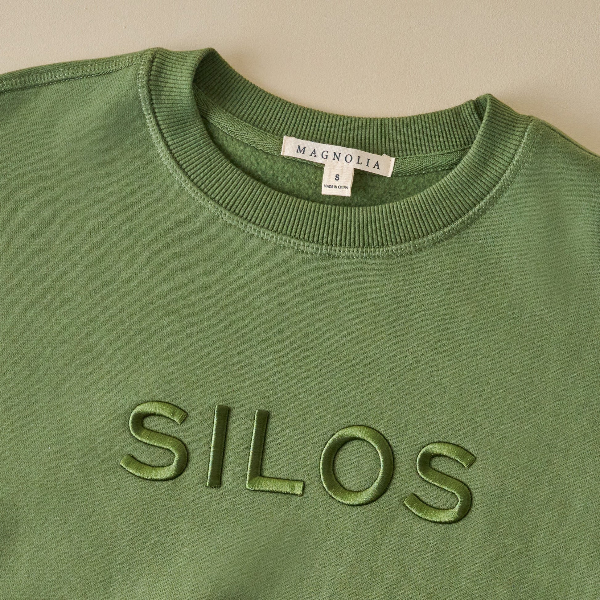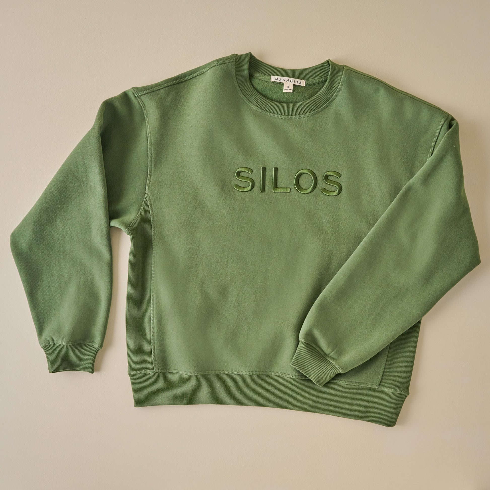 Add a vibrant touch of kelly green to your fall wardrobe with this cozy crewneck-style sweatshirt, thoughtfully designed for comfort and style. Three-dimensional embroidered lettering spells out “Silos” across the front, lending texture and charm to this unique piece. Crafted from a soft cotton-polyester blend, it’s a warm, easy-to-layer staple for the season ahead.