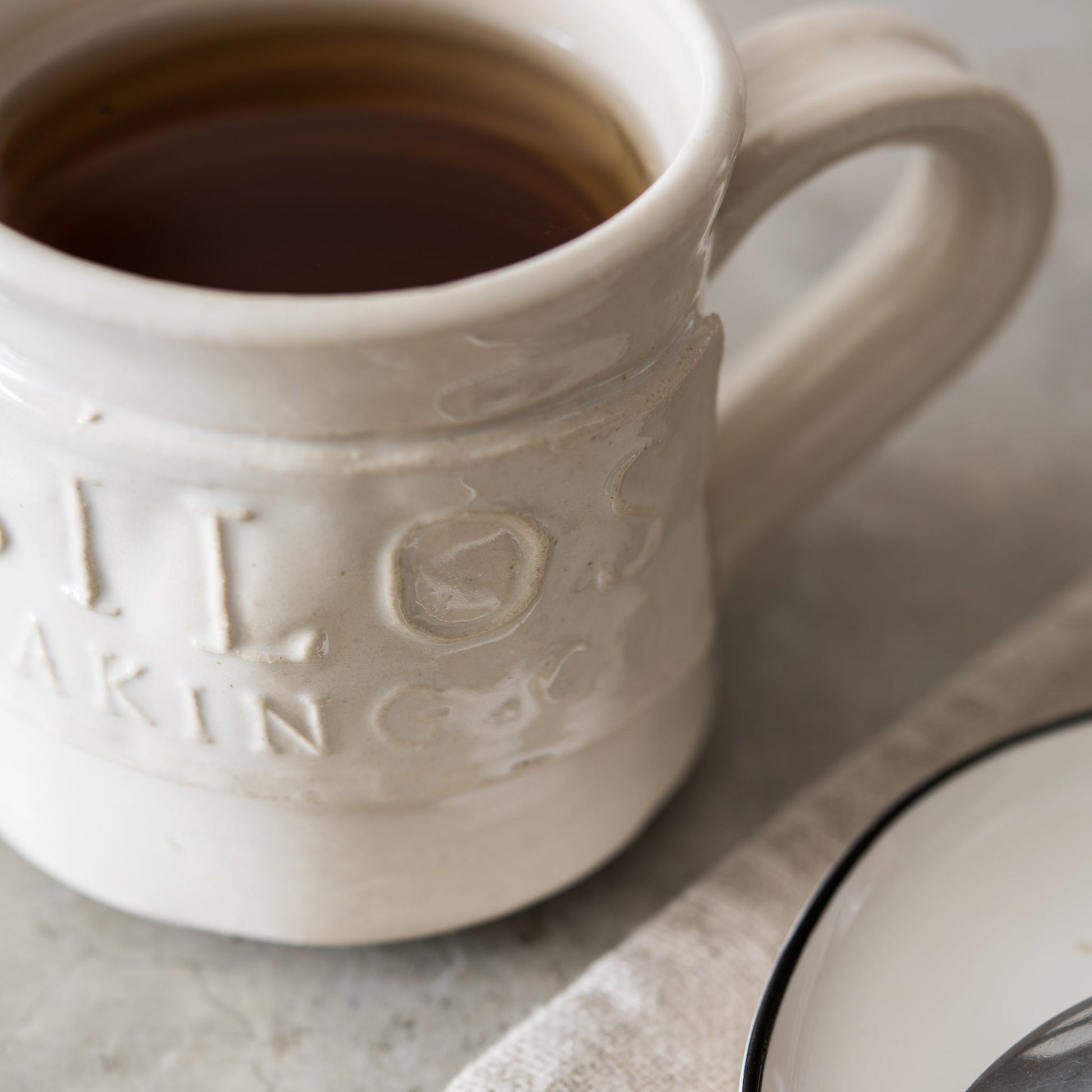 Take a piece of our bakery home with you with our Silos Baking Co. Mug. Handmade by local artisans, this ceramic mug features the Silos Baking Co. logo and a comfortable handle.