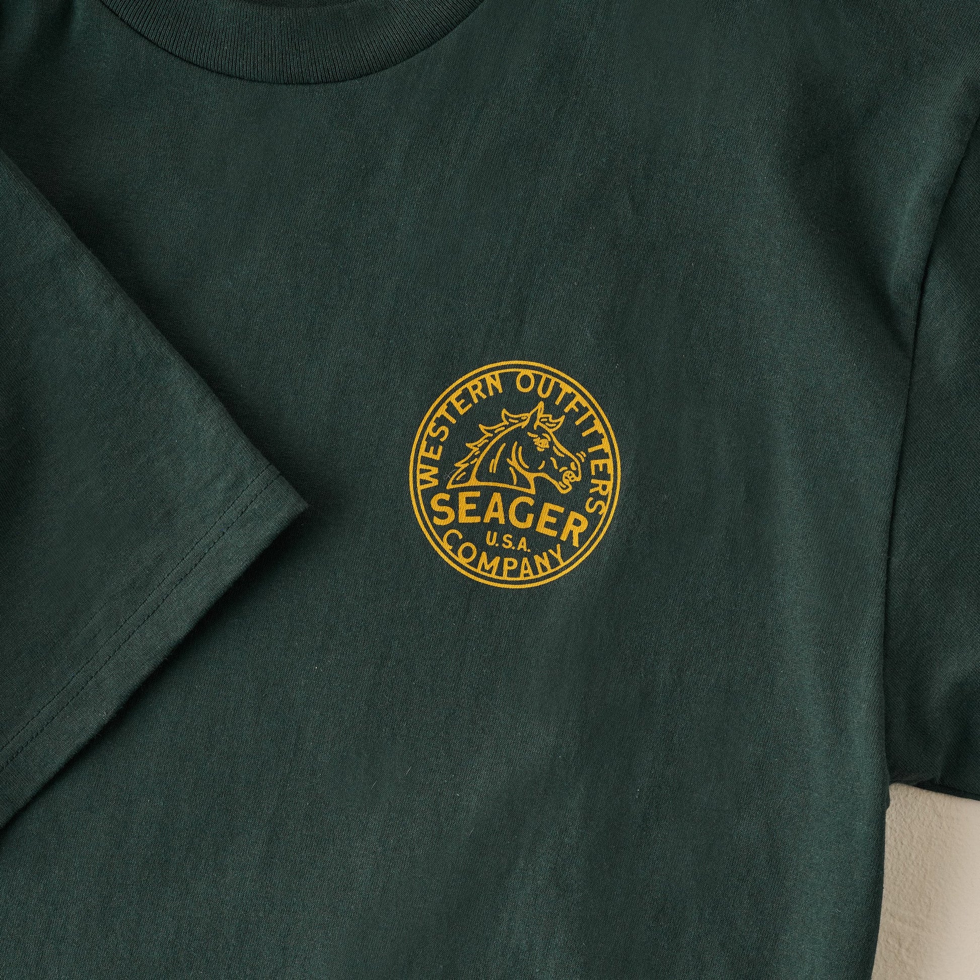 An ode to quality craftmanship and western style, this Seager tee is a clean and classic everyday wear. Made of cotton and polyester, it sports a yellow logo on the left chest and across the back. Printed in California.