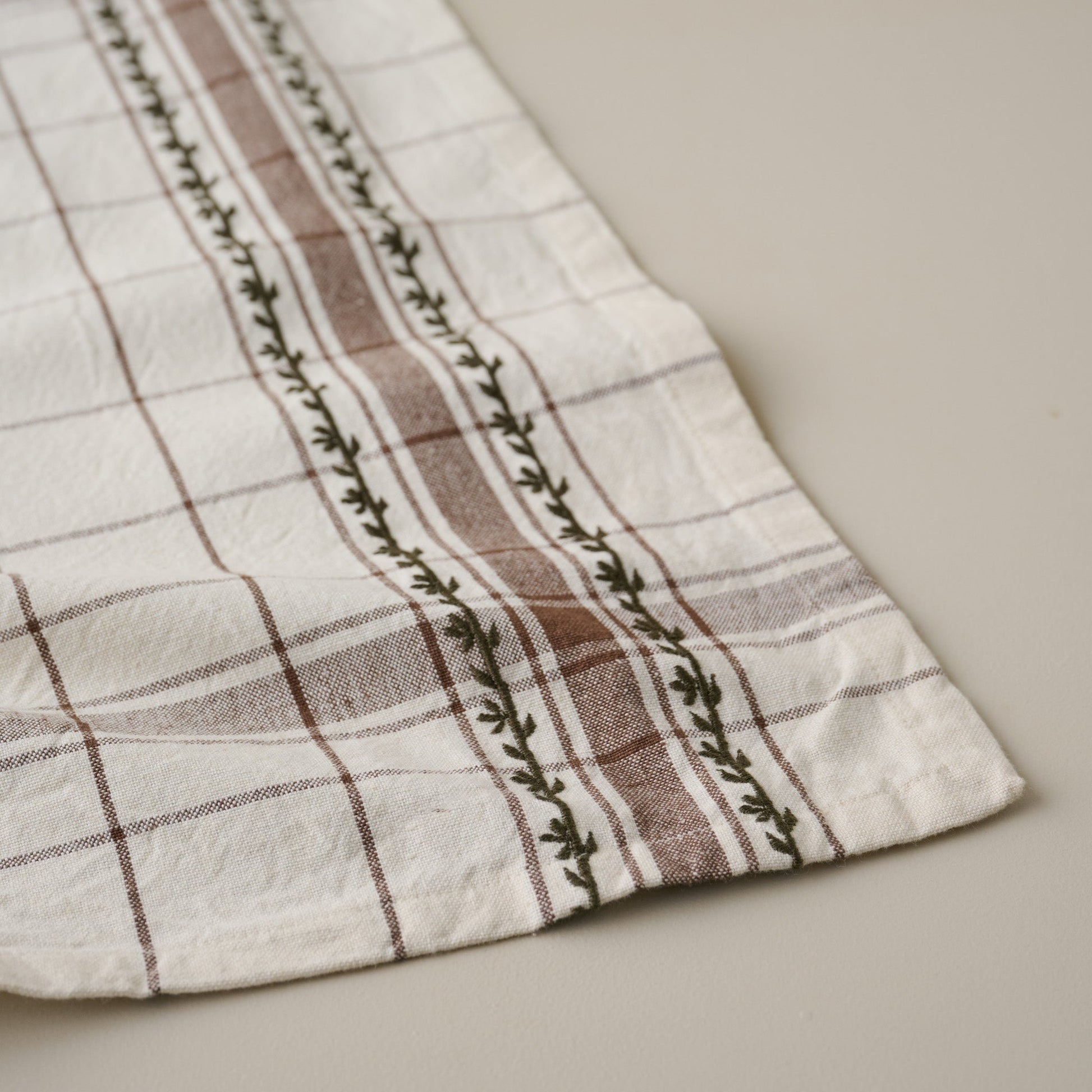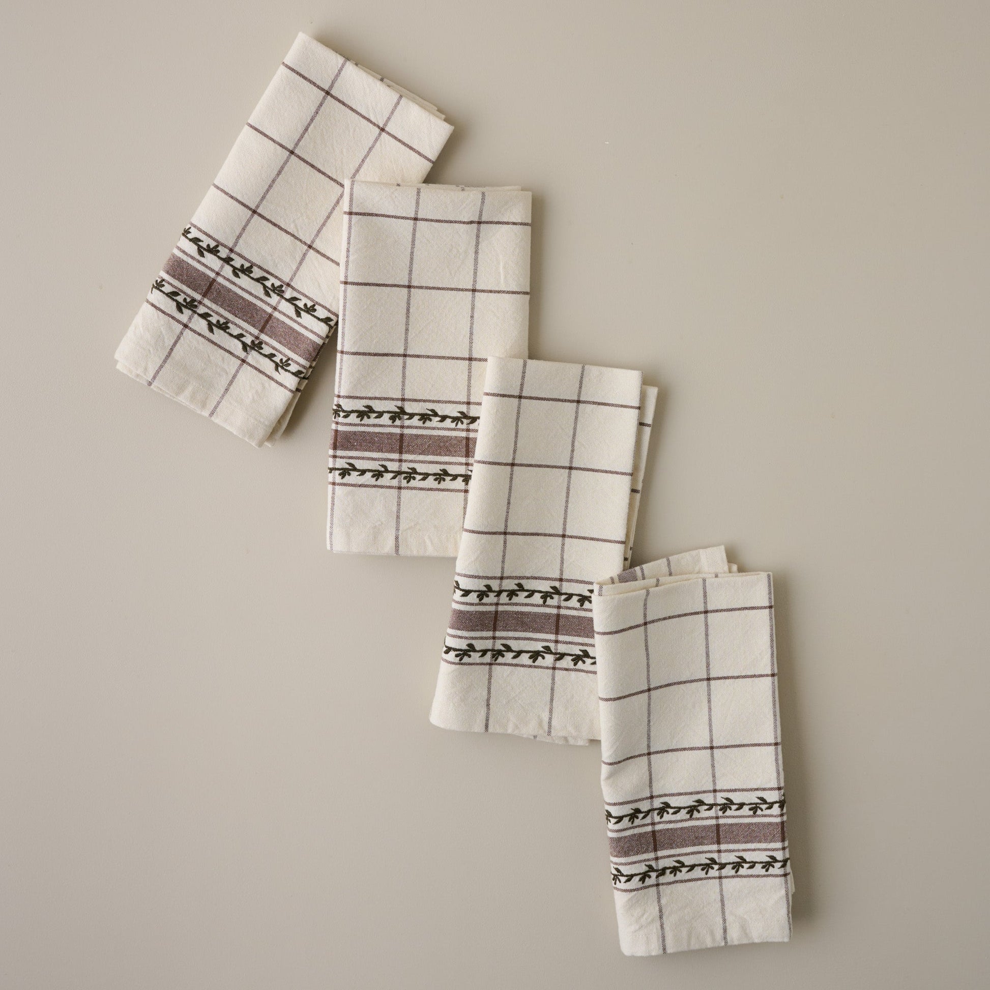 Charming vintage-inspired details and elegant style merge in the Talia Napkins Set of Four, where a classic grid pattern is softened by delicate embroidered vines. Thoughtfully detailed and timeless in spirit, these table linens lends a graceful touch to any setting—whether for everyday meals or special gatherings.