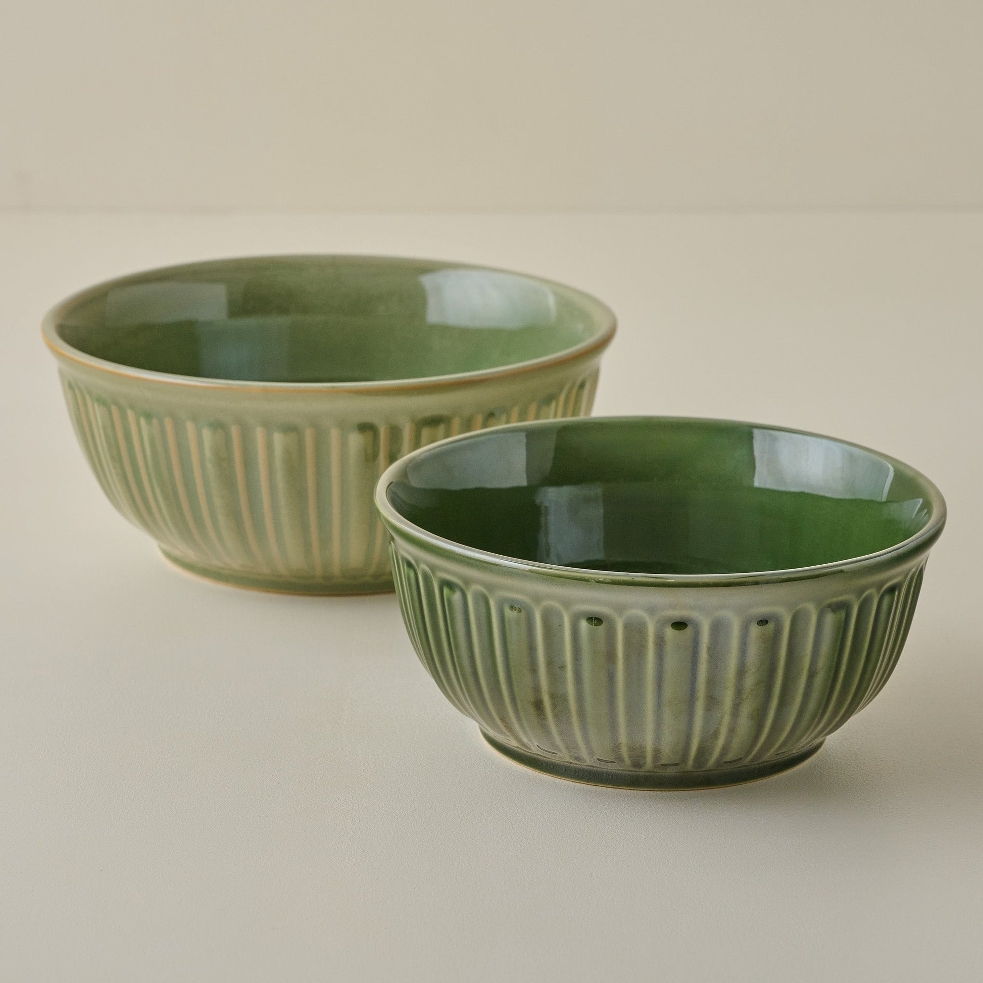 Whether mixing ingredients in the kitchen or serving dishes at the table, our Laurel Green Mixing Bowl Set makes it easy to savor the season. These vintage-inspired pieces are earthy and effortlessly charming in two shades of green. Designed to delight as a gift or something special for yourself, the set is tied together with a ribbon that reads, “We believe that some of life's best moments are enjoyed with good food and great company around the table.” Pairs well with the Laurel Green Round Baking Dish and other pieces in our Cottage Collection.