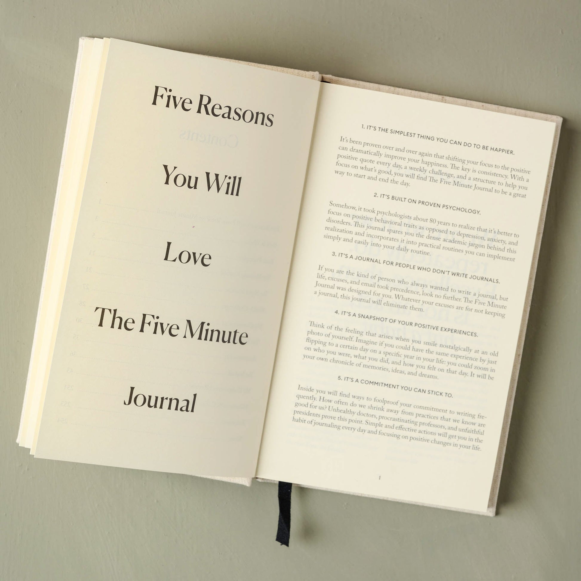 Take a few minutes each day to see the good. Made with a beautiful linen cover and biodegradable paper pages, The Five Minute Journal guides you through six months of daily journaling and thankfulness—capturing sweet moments worth remembering.