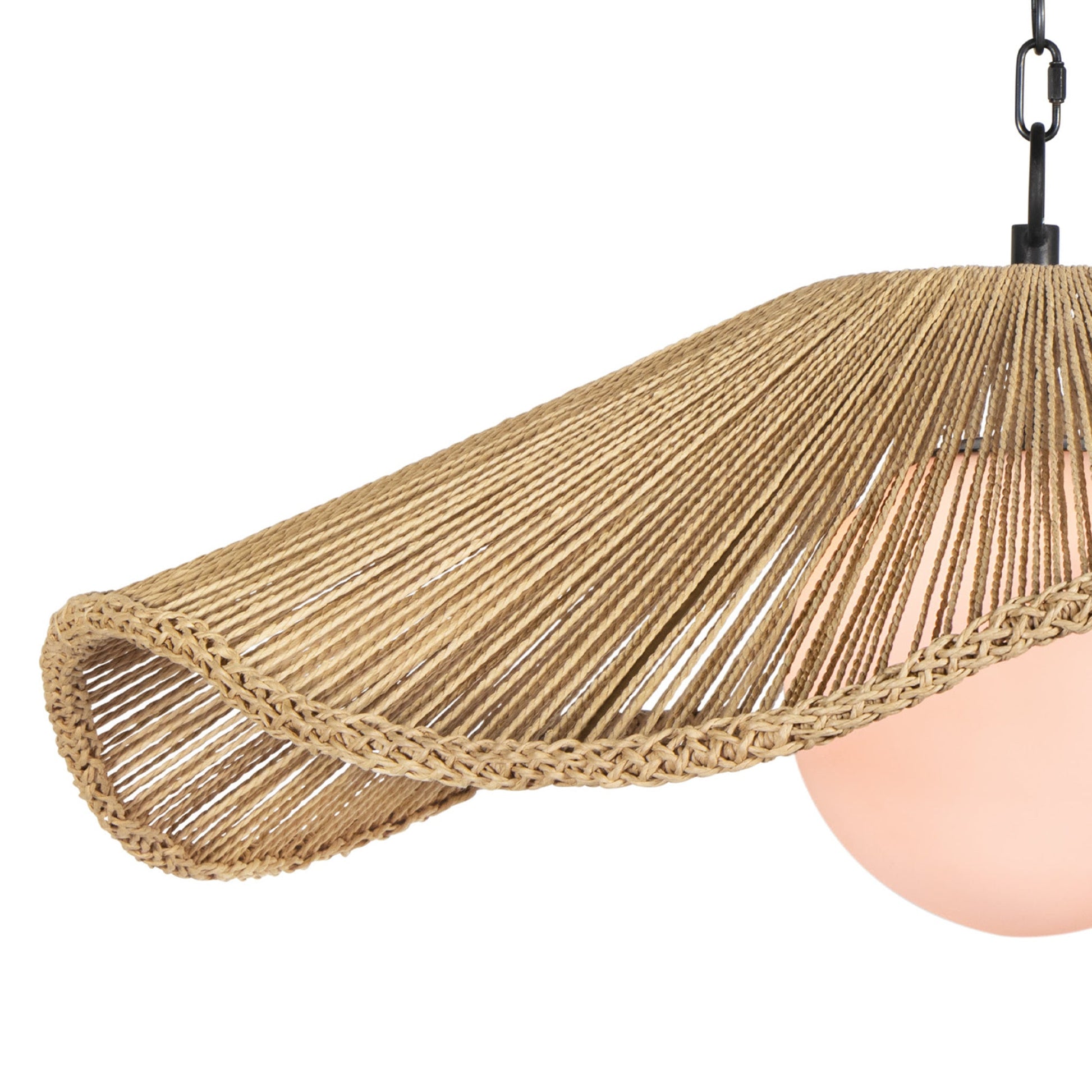 Seaside cafes in the south of France come to mind when the Venus Pendant adorns a room. A twisted rope shade with a wavy, braided edge brings high-fashion detail as a white glass globe peaks out from underneath. The pendants create a true bistro experience when hung over a dining nook. Available in two sizes.