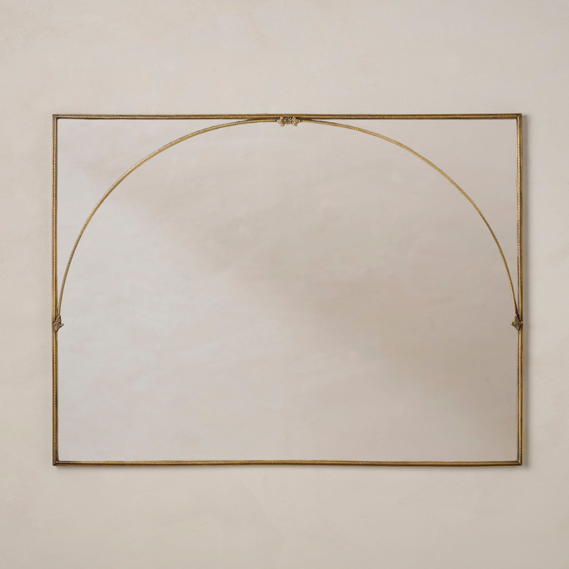 The Vienna Mantel Mirror showcases a double frame crafted from smooth brass, blending soft curves with straight edges. Its timeless and elegant design enhances any room with a sophisticated touch. This versatile mirror is perfect for hanging above a fireplace or a dresser.
