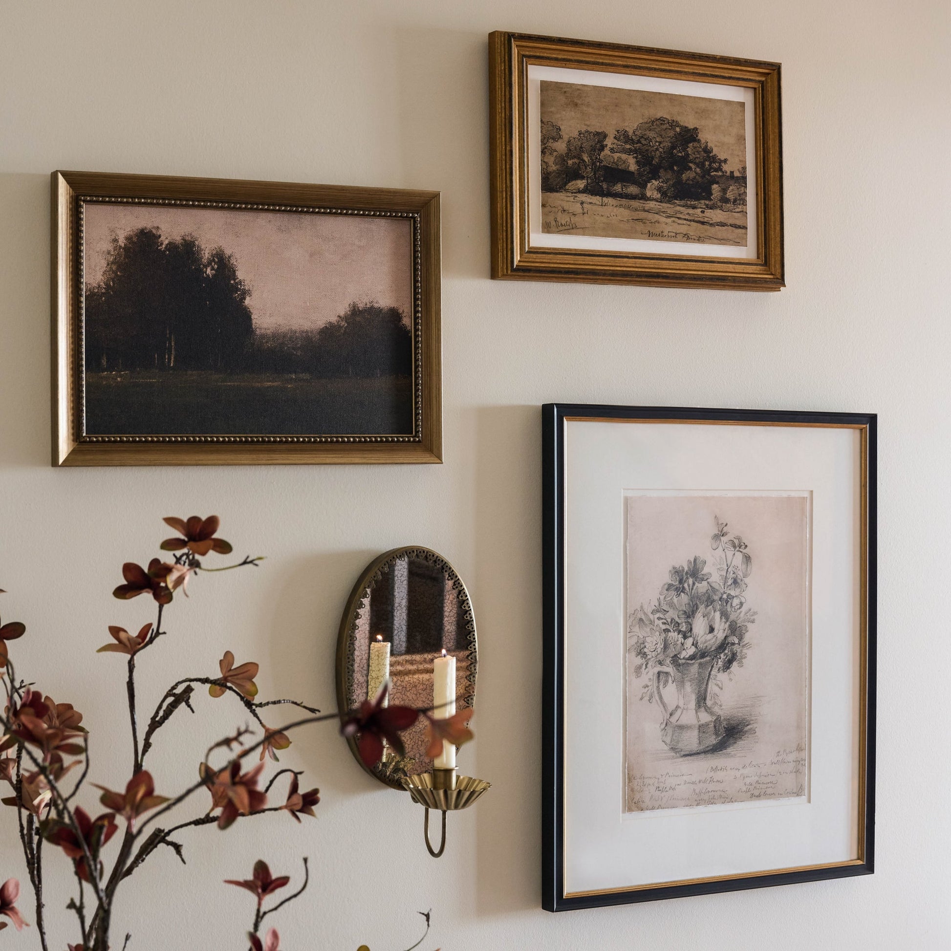 Handpicked by Joanna Gaines and inspired by her personal art collection, this vintage reproduction features a sketch of wild blooms mounted on white matting and bordered by a thin black frame. Exclusive to Magnolia.