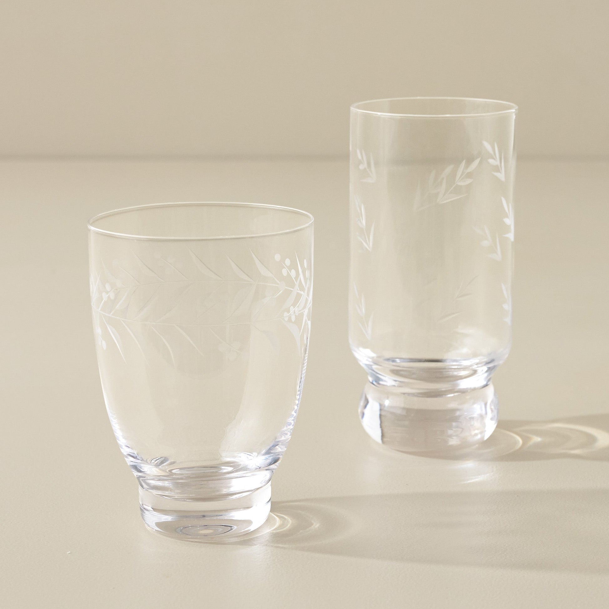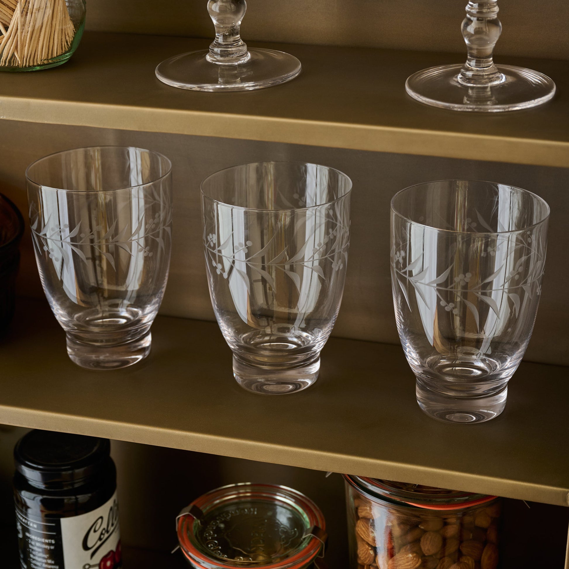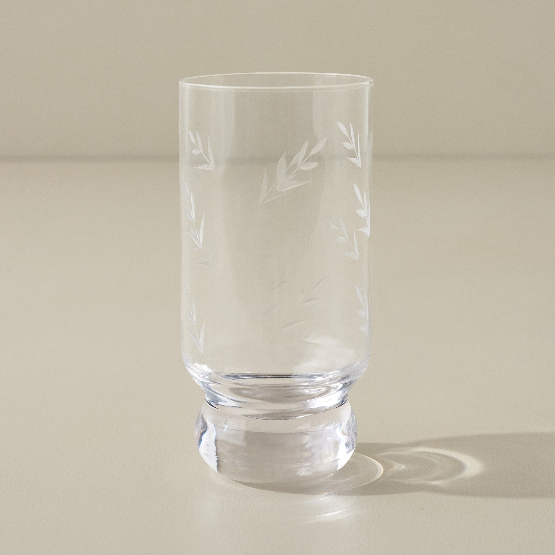 This etched glass tumbler features a vintage floral design that adds a classic and graceful look to your drinkware. It offers a lovely, timeless style and comes in two different sizes.