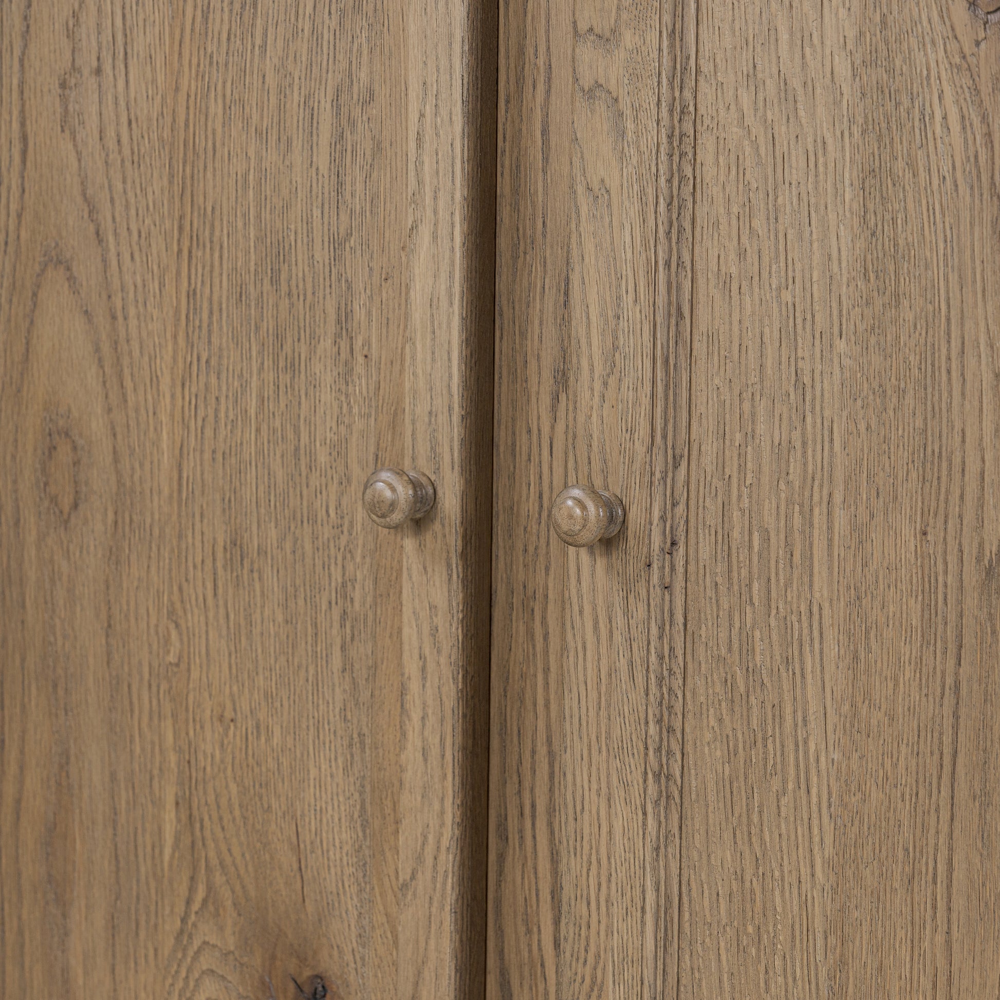 The Walt Cabinet, with its stately appearance and sturdy craftmanship, is a versatile and functional decor piece, built to last for generations to come. Built of solid oak and finished in a thick oak veneer, this natural-toned cabinet accents any living room, entryway, or dining room with sophistication.