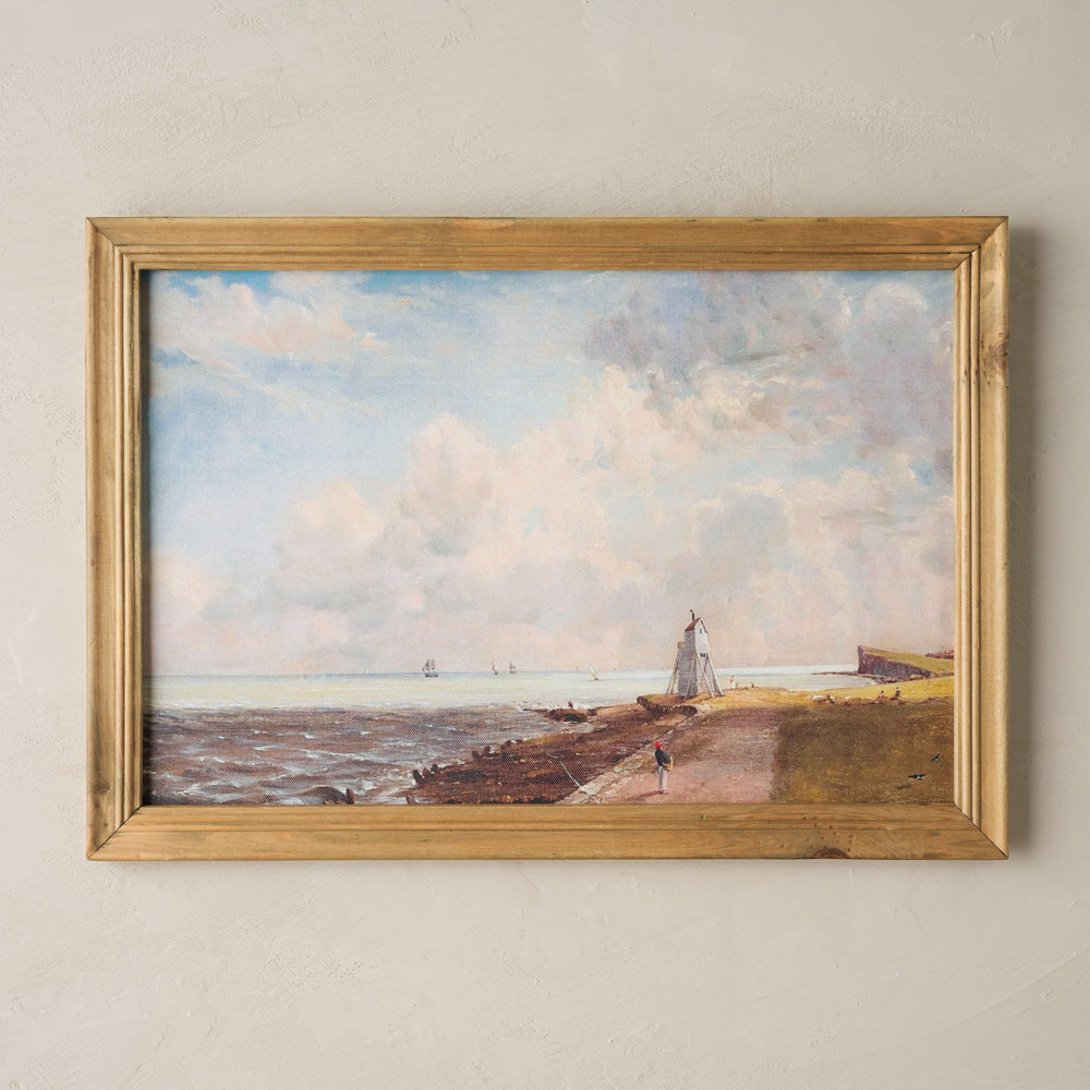 As if transported to a warm day with a gentle sea breeze, Waves of Light captures the nostalgic essence of gazing out over the horizon and a rocky shoreline. With its sunlit tones and neutral wood frame, this print brings a grounded serenity to any space.