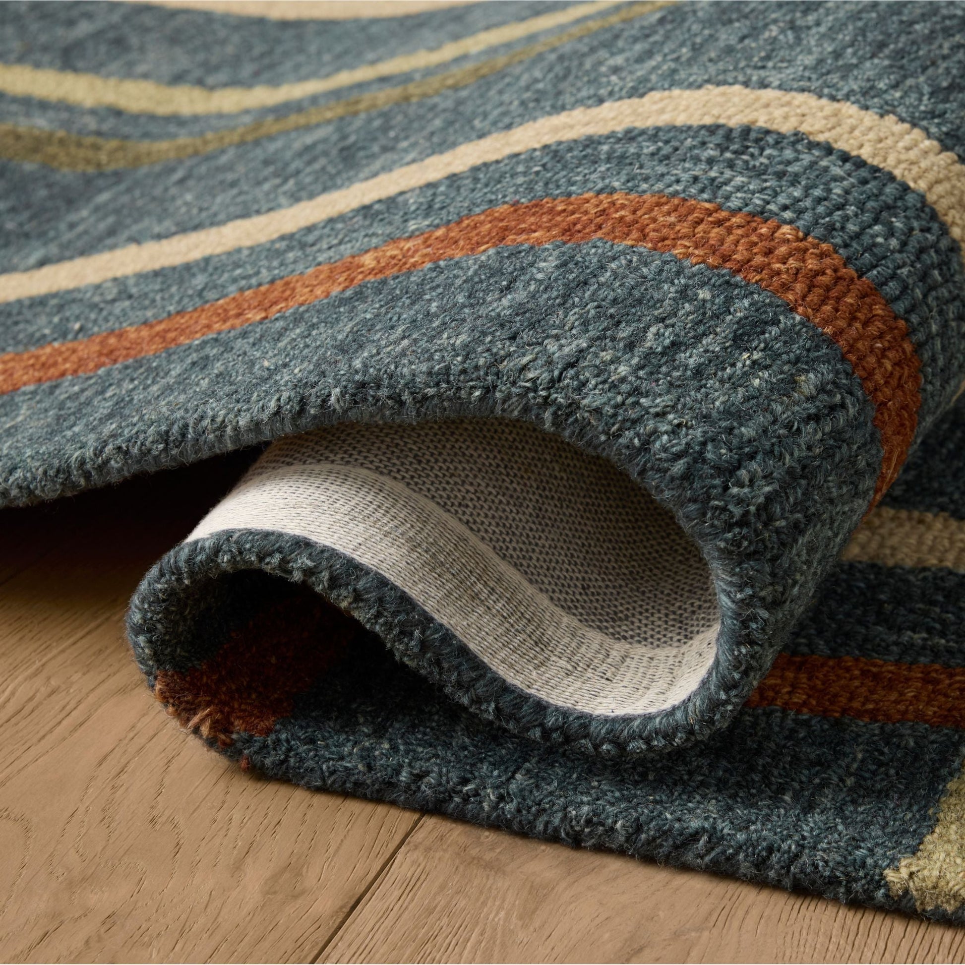 The Waylon Denim Multi Rug is a hand-tufted wool area rug with a strong linear design and sturdy pile from Magnolia Home by Joanna Gaines x Loloi. The nostalgic natural color palette works seamlessly with traditional, farmhouse, or contemporary home decor.