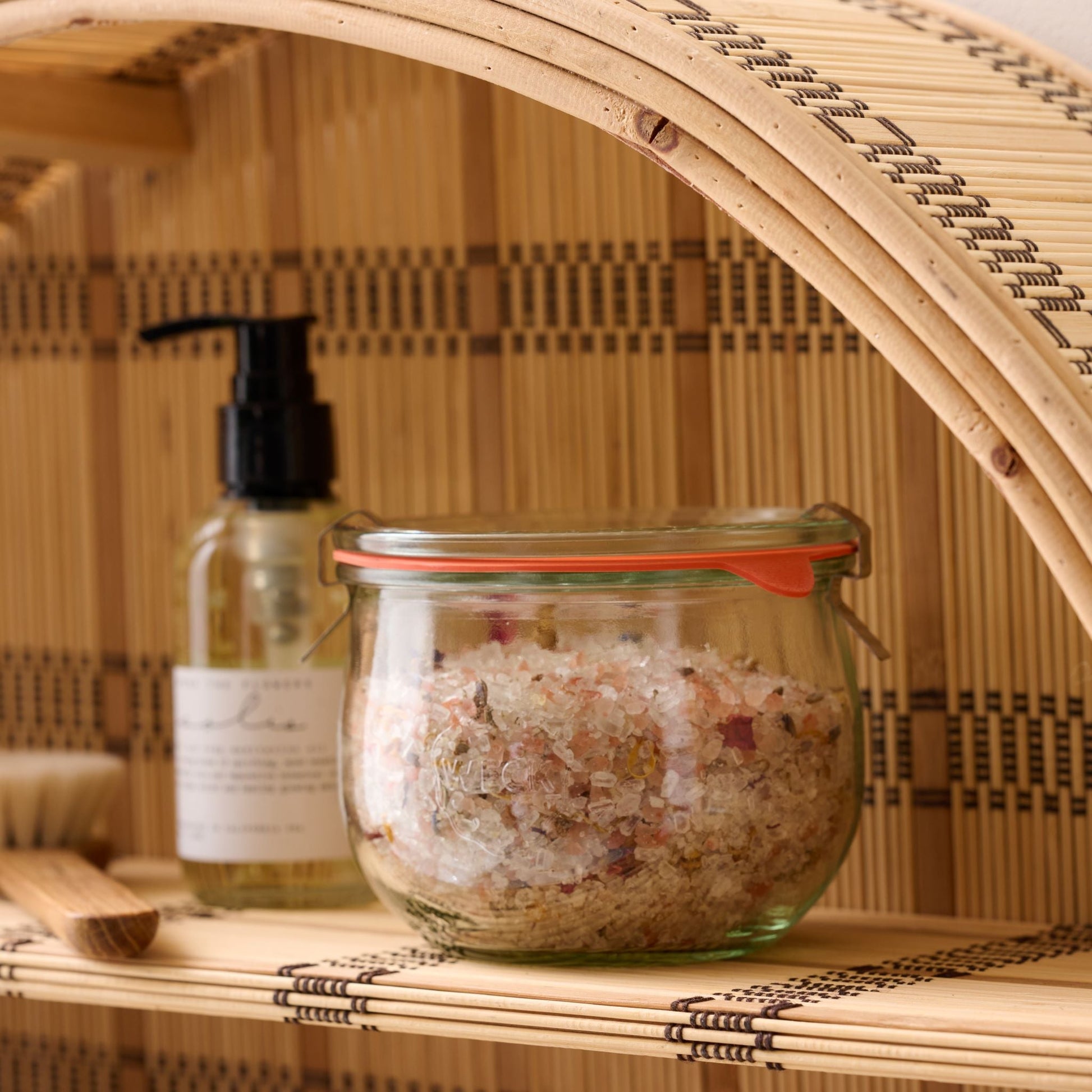 The Weck 744 ½ L Tulip Jar is popular for candles, canning, snacks, and serving delicious dips. For a fun alternative the Weck 744 ½ L Tulip Jar can also be used to store bath salts in your bathroom.