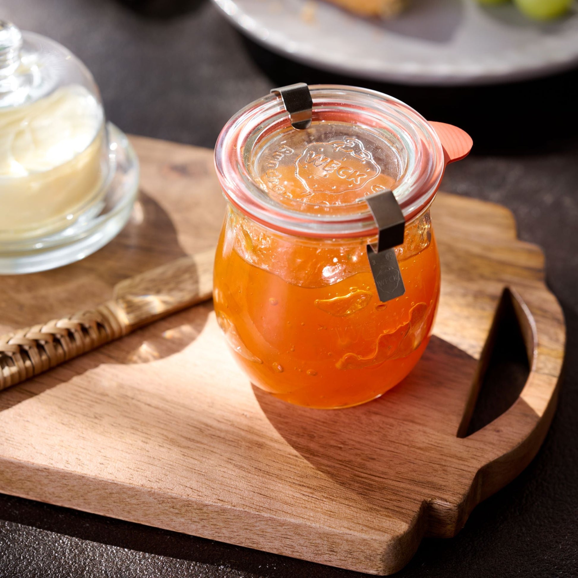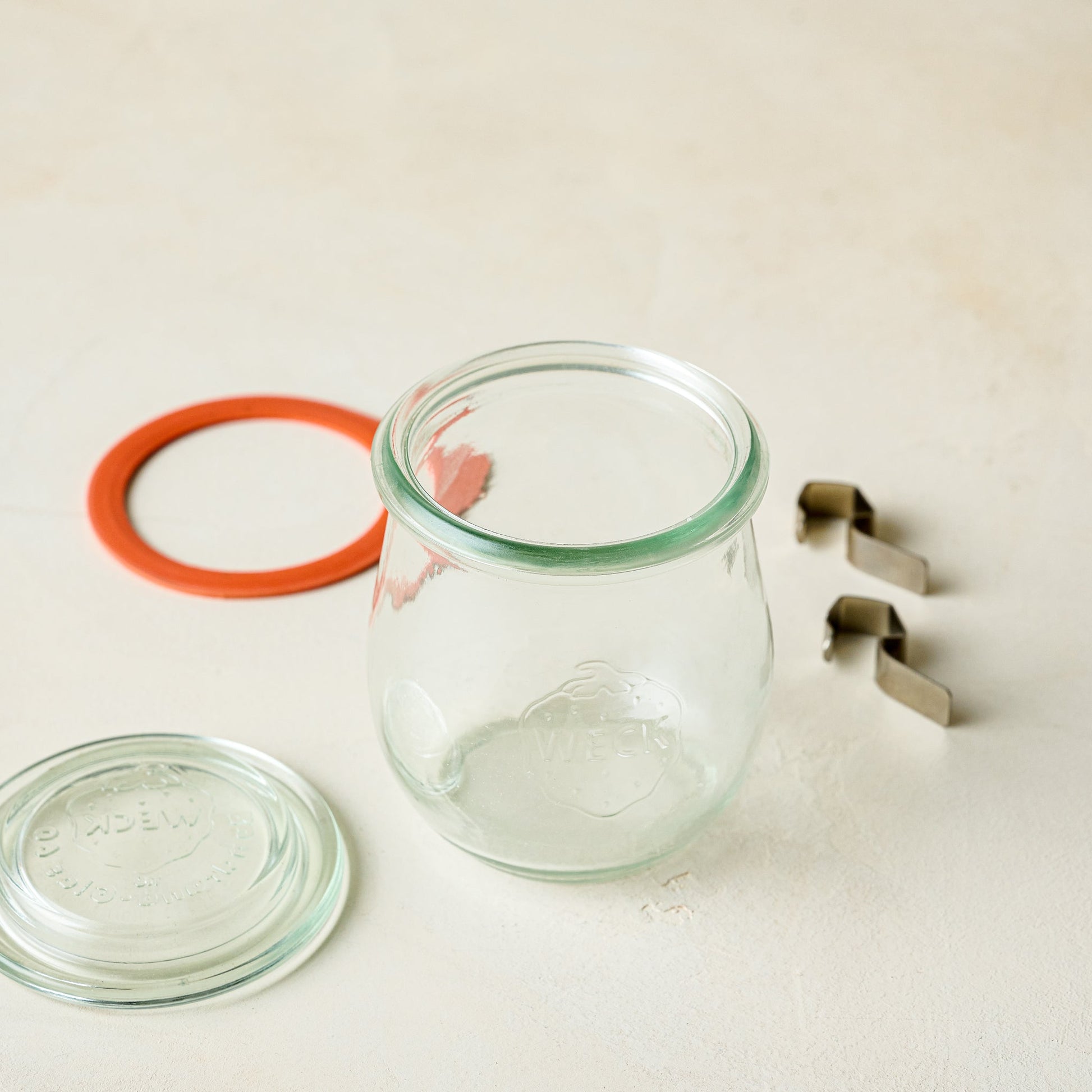 The Weck 762 ⅕ L Tulip Jar is popular for garnishes, canning, single serving desserts, and jams and jellies. Guests enjoy the jar’s single serving size and rounded shape that is perfect for snacks, crafts, and storage.