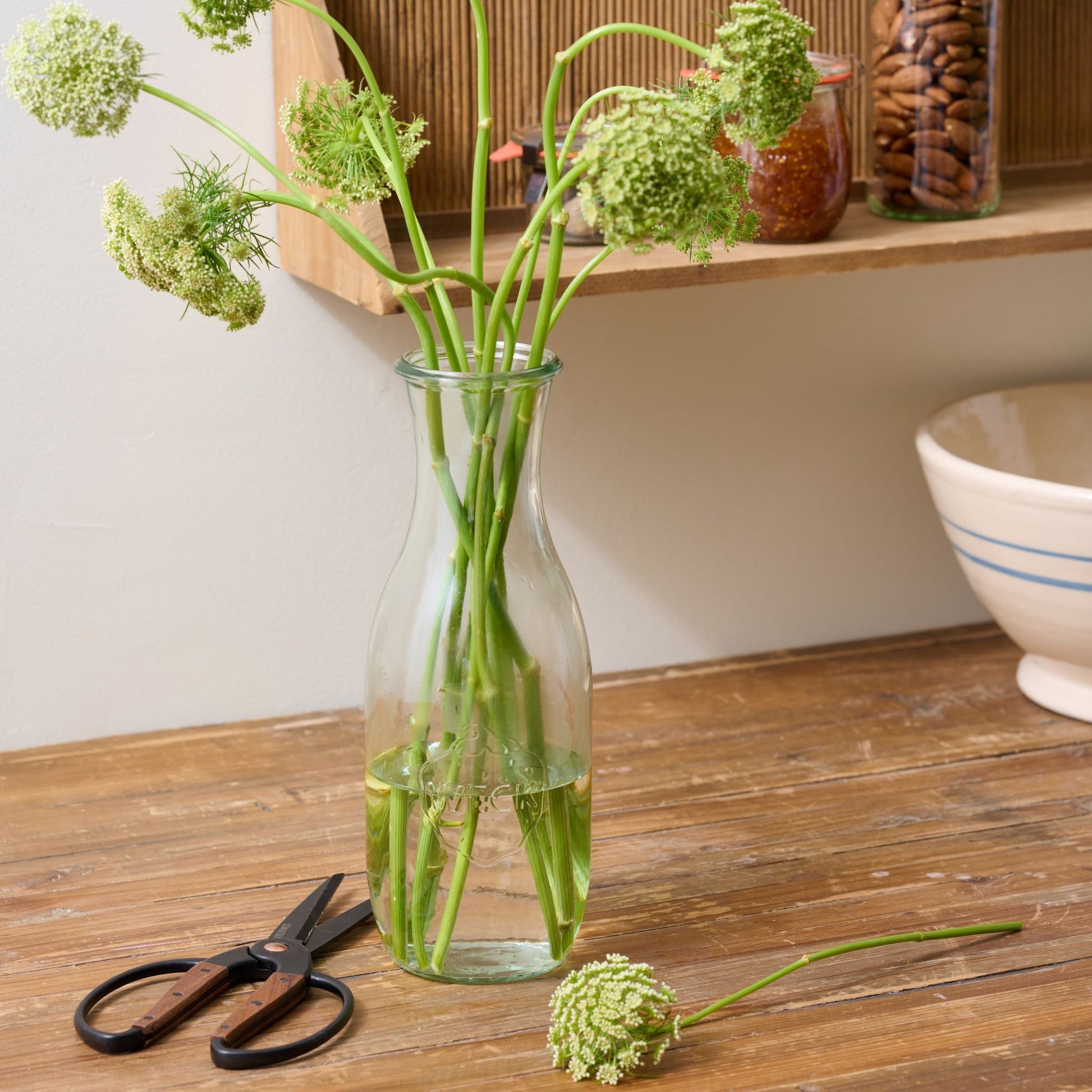 The Weck 766 1 L Juice Jar is popular for milks and juices. Guests enjoy the jar’s large and easy-to-hold shape that is perfect for anything pourable. For a fun alternative, the Weck 766 Jar can even be used as a vase.