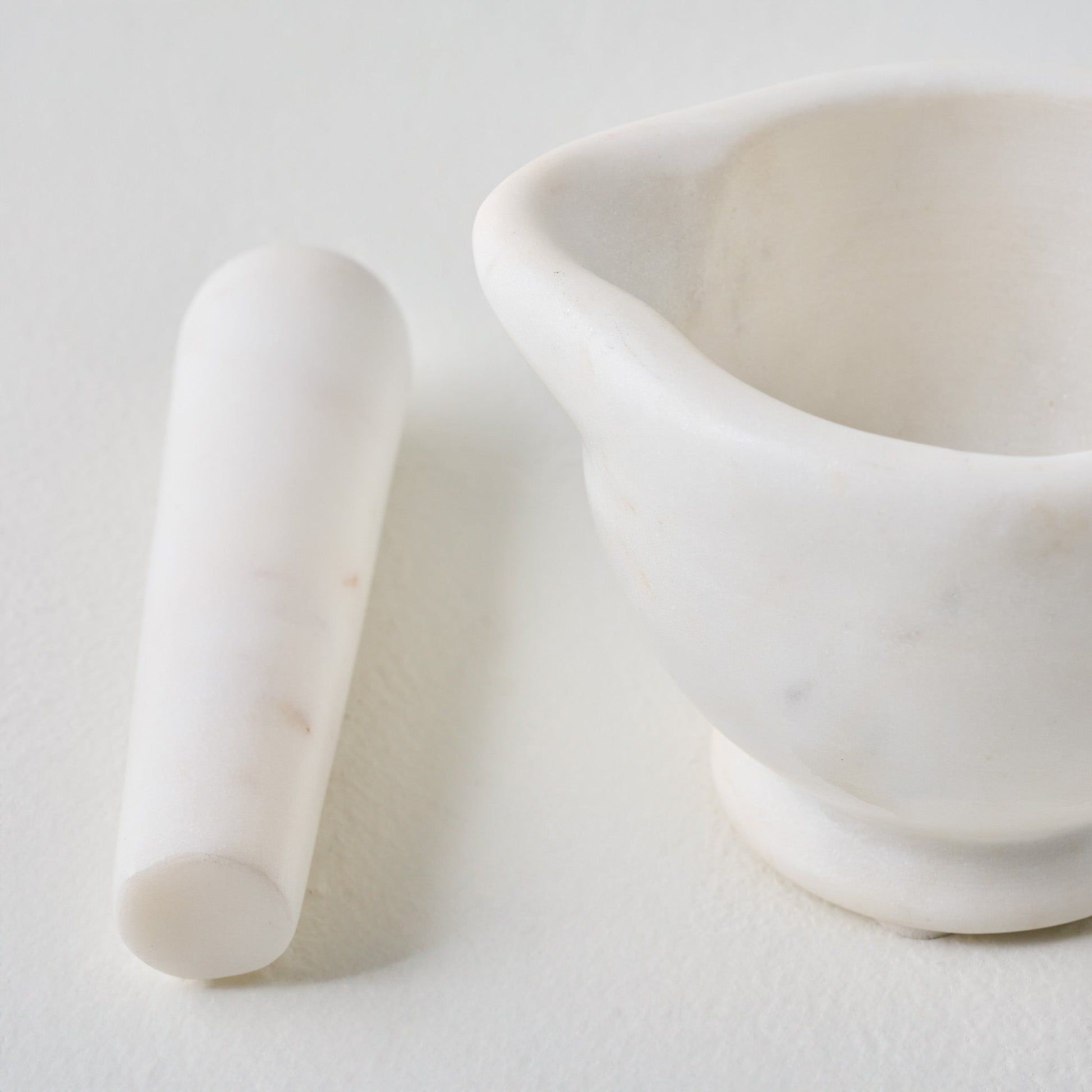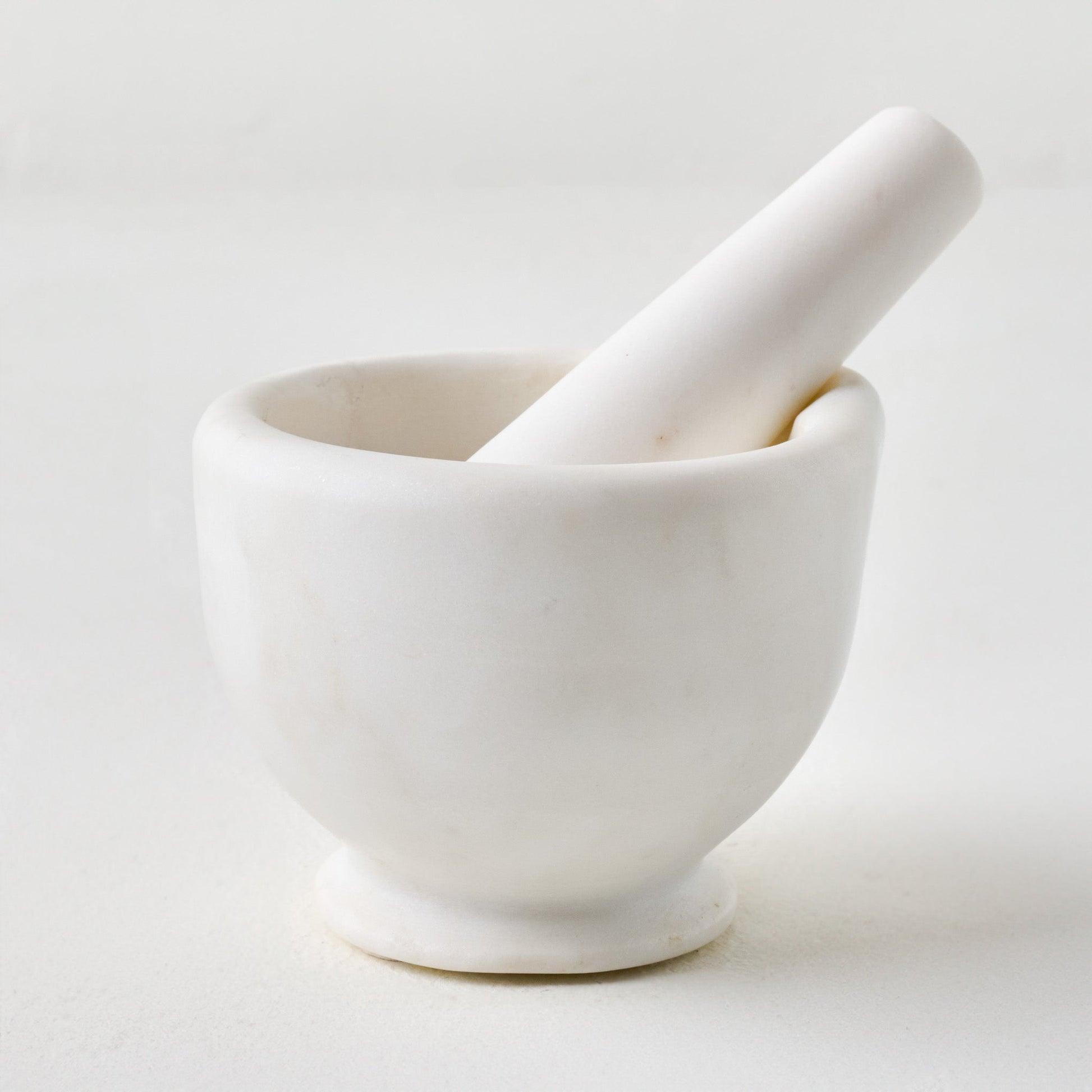 Elevate your at-home culinary experience with our darling Mortar + Pestle, amazing for grinding peppercorns or making homemade guacamole. Crafted from 100% marble, this kitchen tool brings bright and fresh elegance to any cooking space.