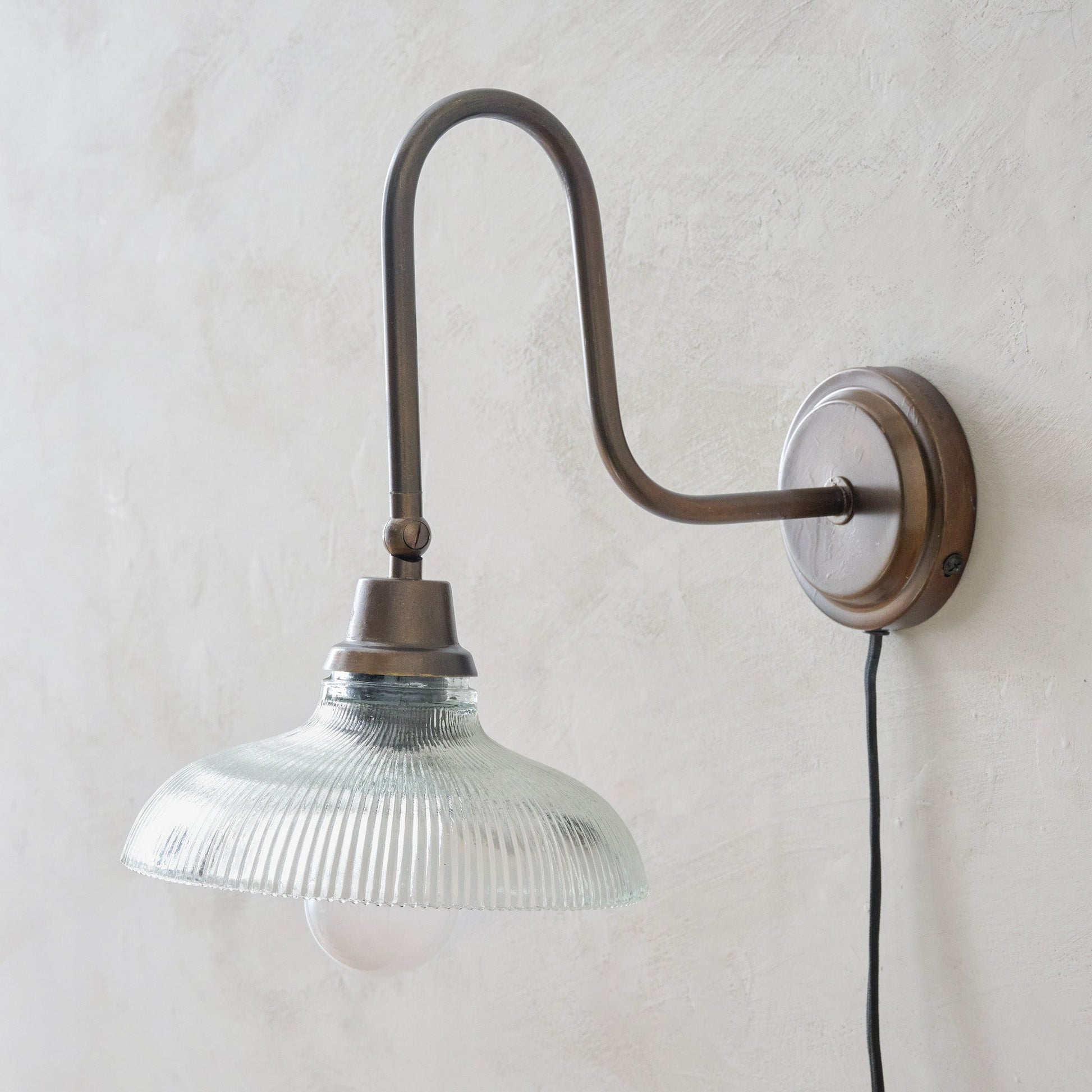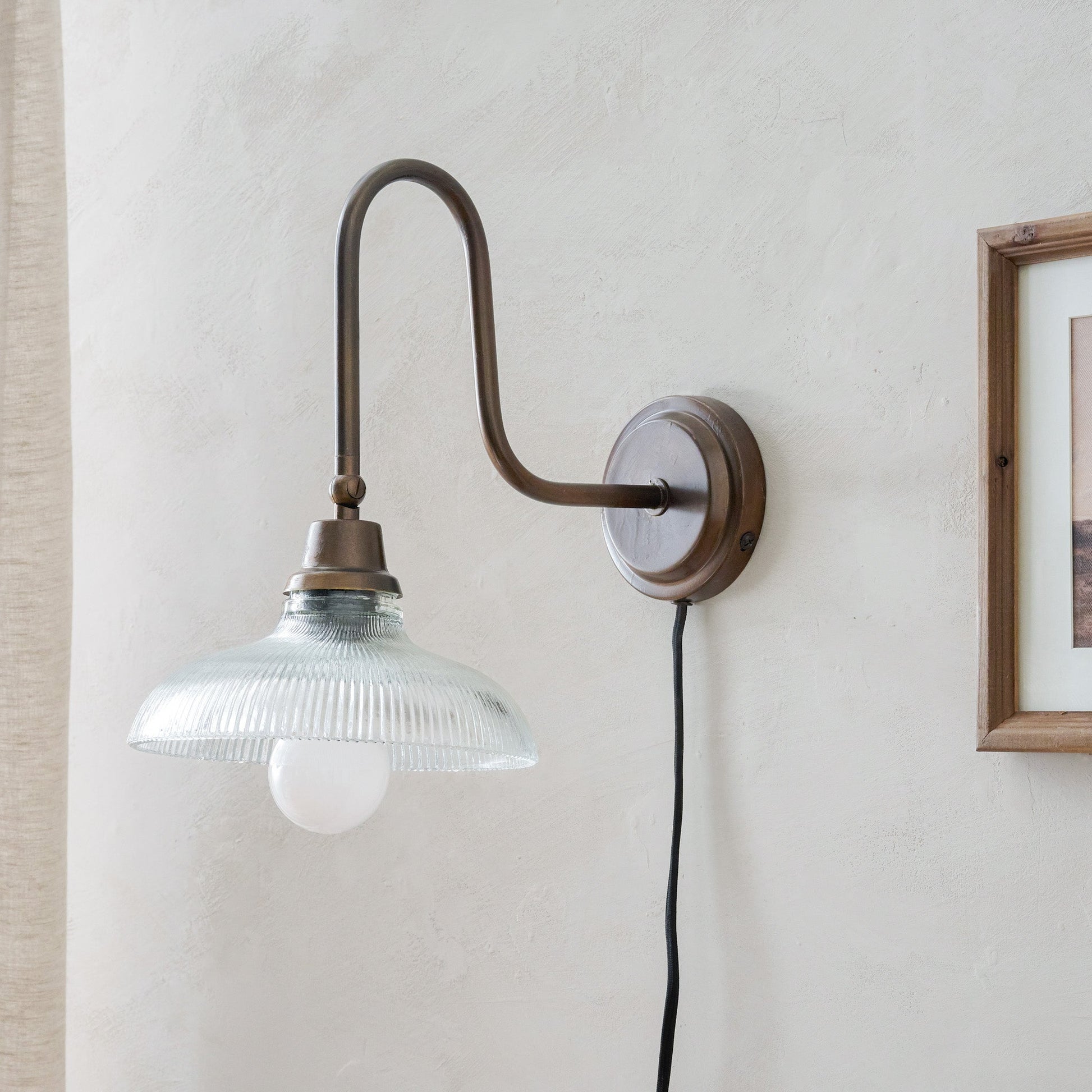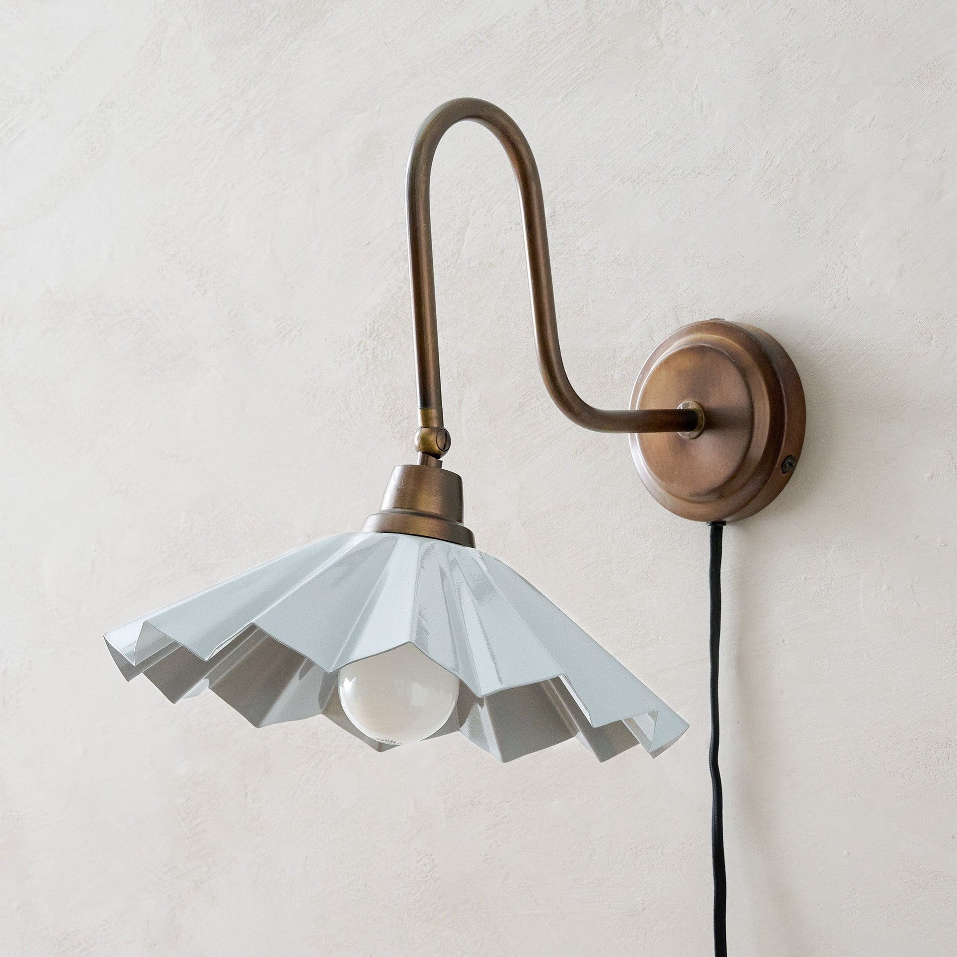 Featuring two different styles of shade, the Winston Wall Lamp is a beautiful, understated sconce that brings charm to any space. With your choice of a power blue enamel shade with an angular design, or a clear glass shade with a ribbed texture, you are sure to find an option that best compliments your style.
