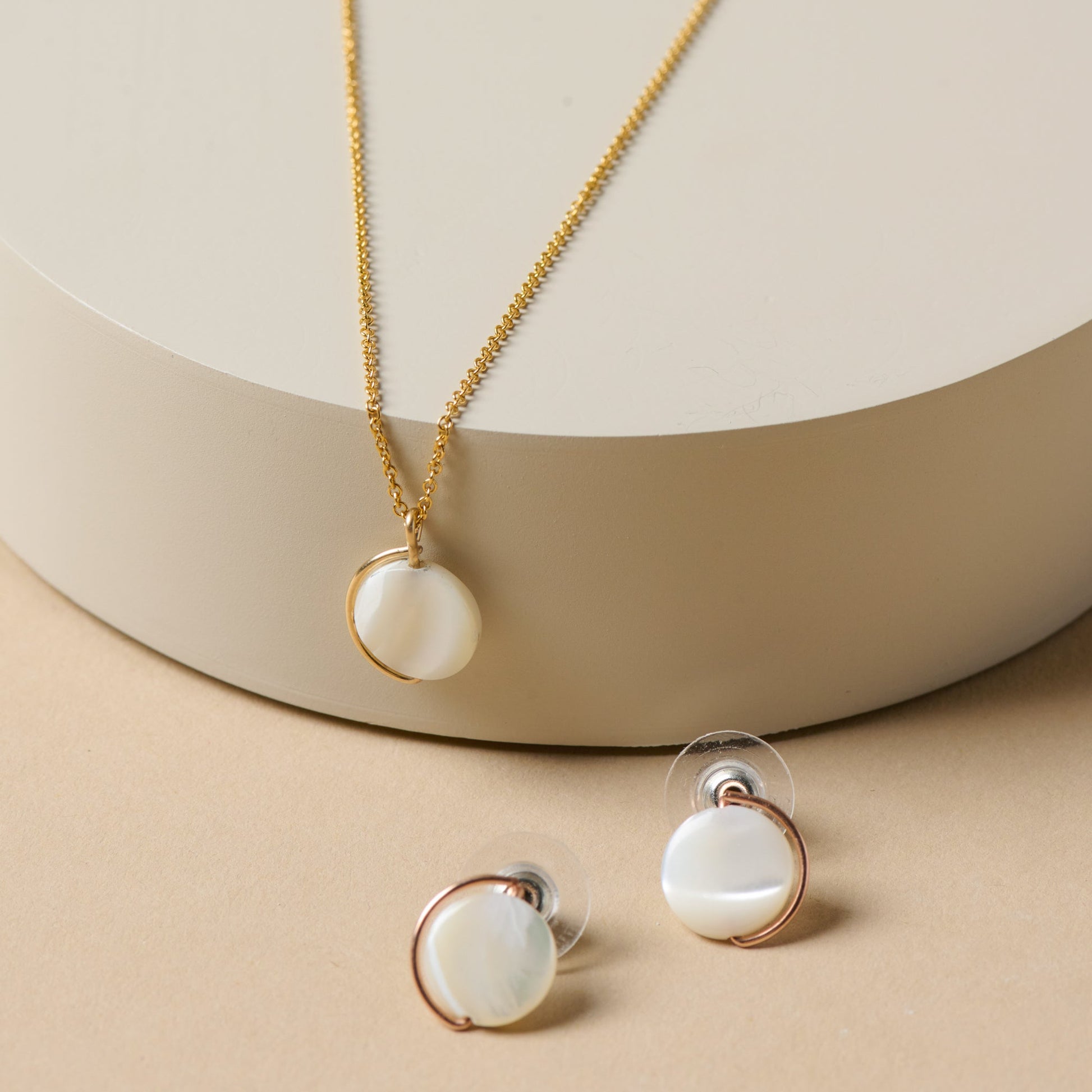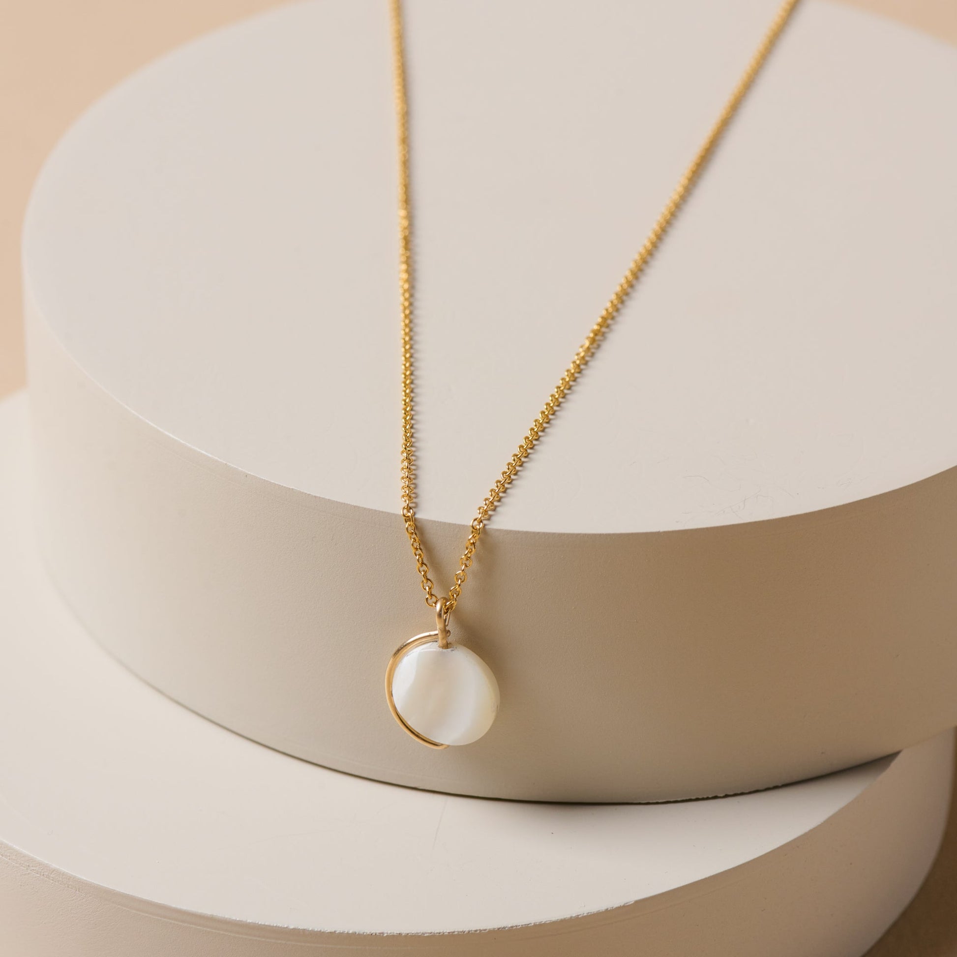 A modern twist on a classic pearl necklace, the Wren Necklace makes an elegant addition to any look. Featuring a combination of creamy Mother of Pearl and a gold-filled chain, this necklace is handmade by local artisan, Summer Ellis.
